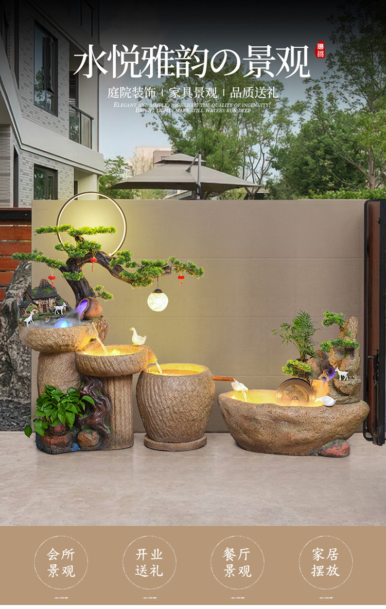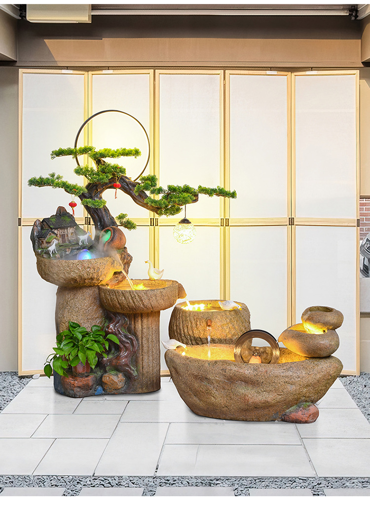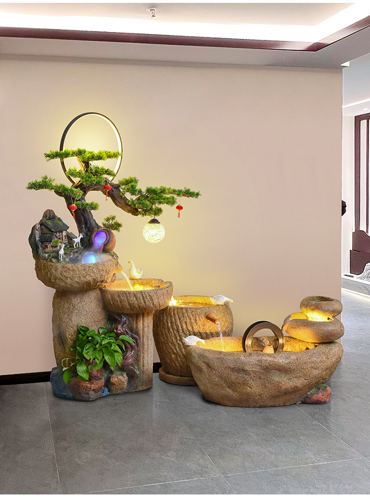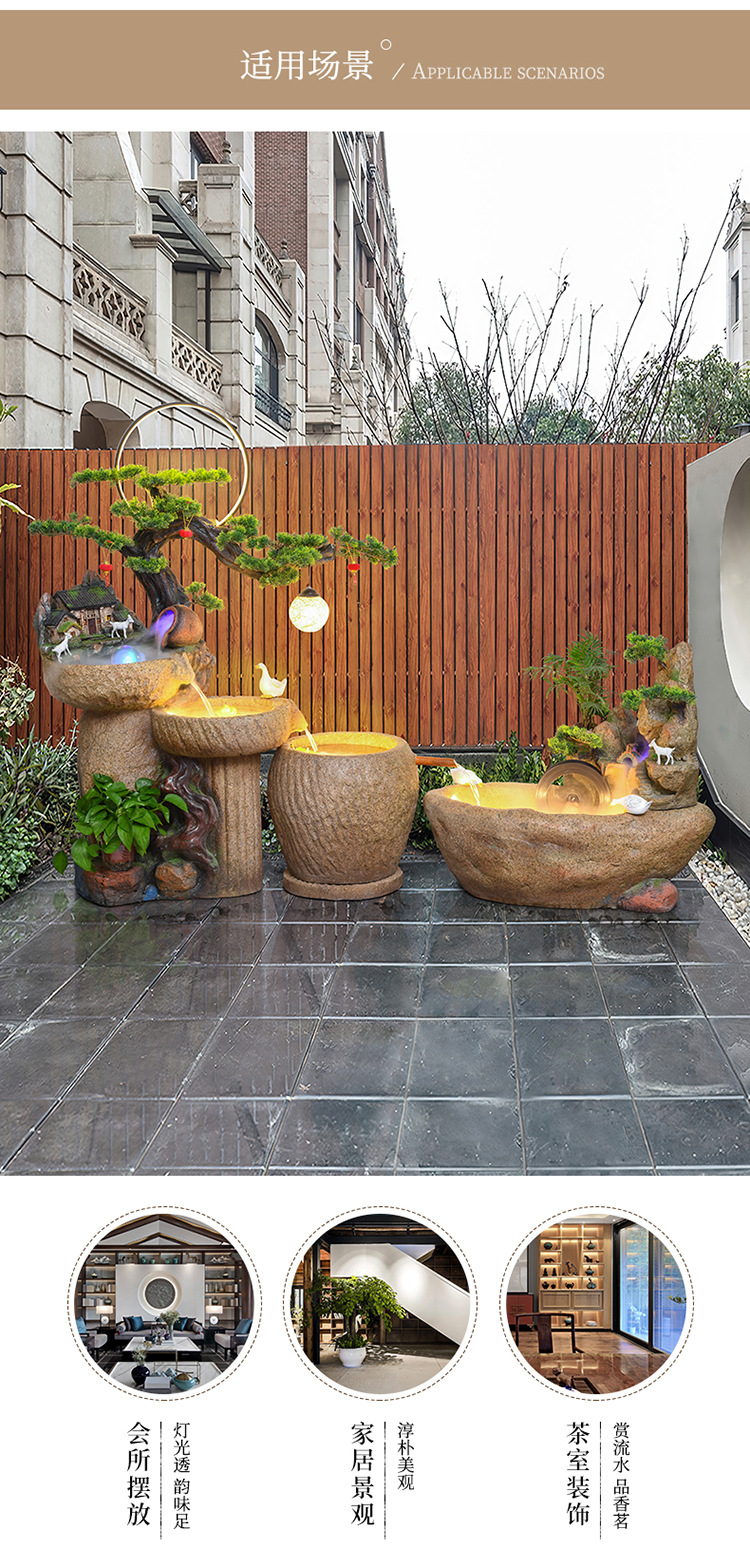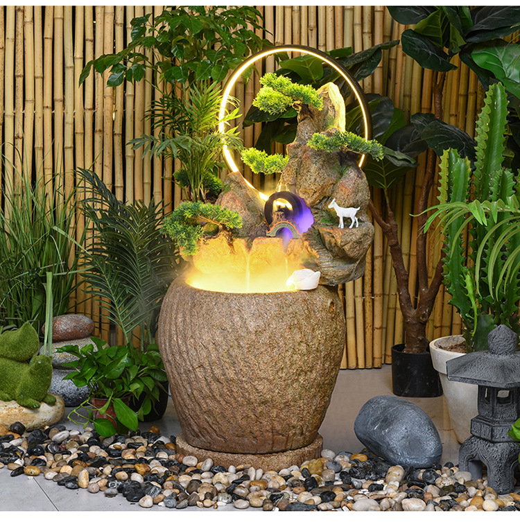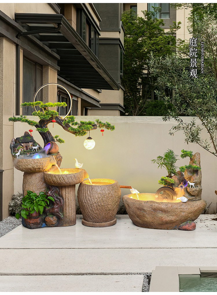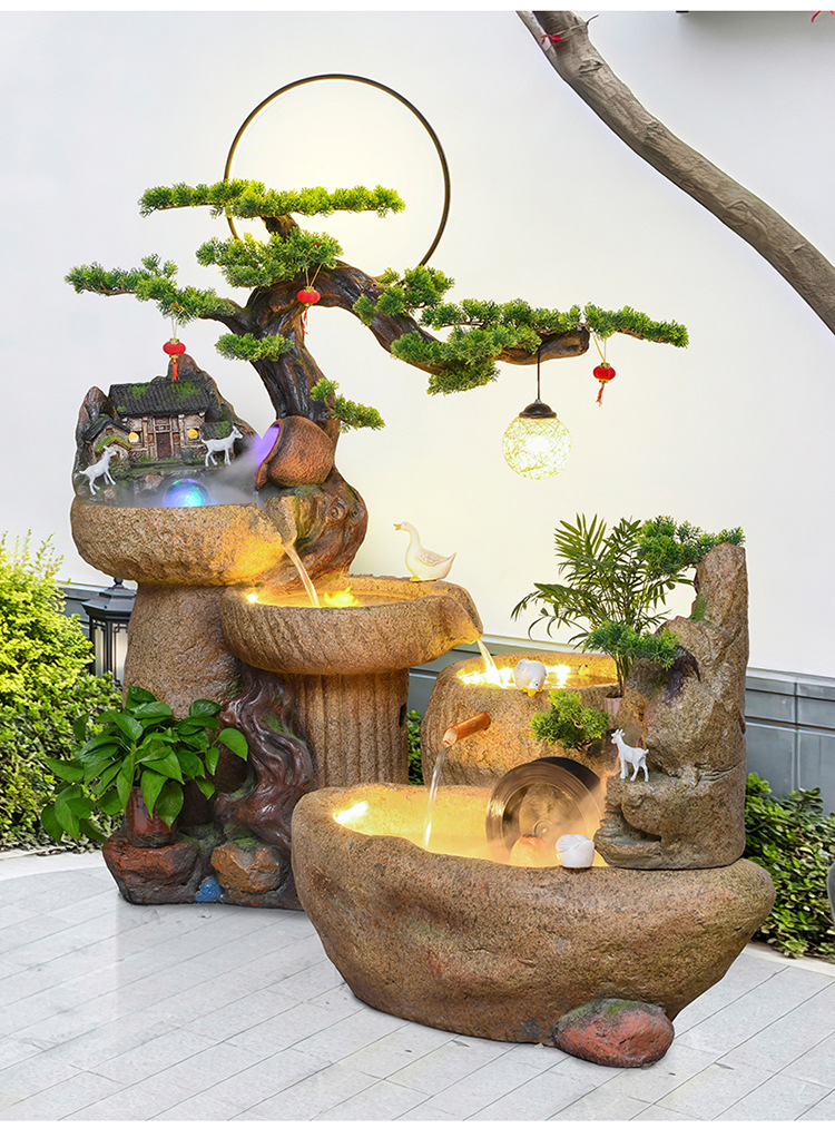 중국 스타일의 암석 흐르는 물 물고기 연못 분수 야외 풍수 휠 빌라 정원 발코니 실내 순환 물 돌 공장 장식품스토어 가기
