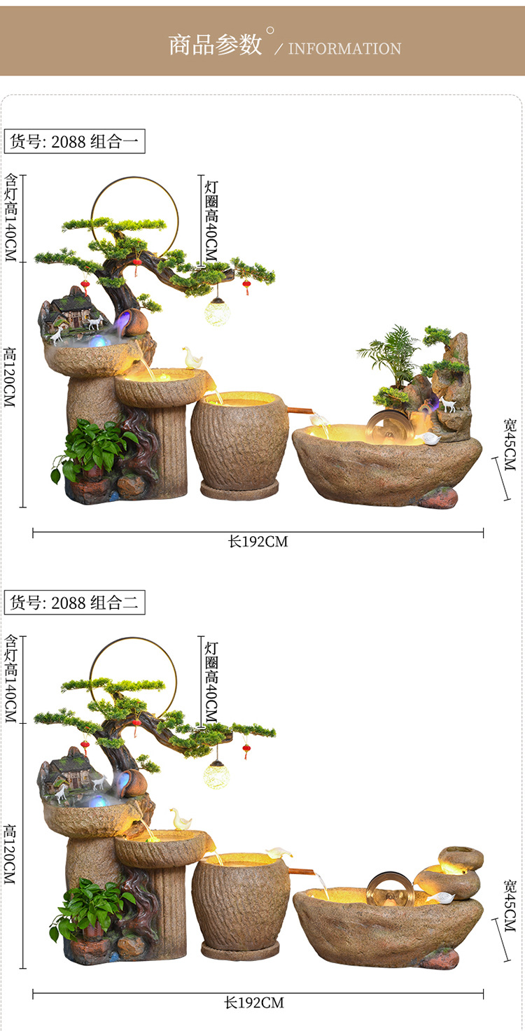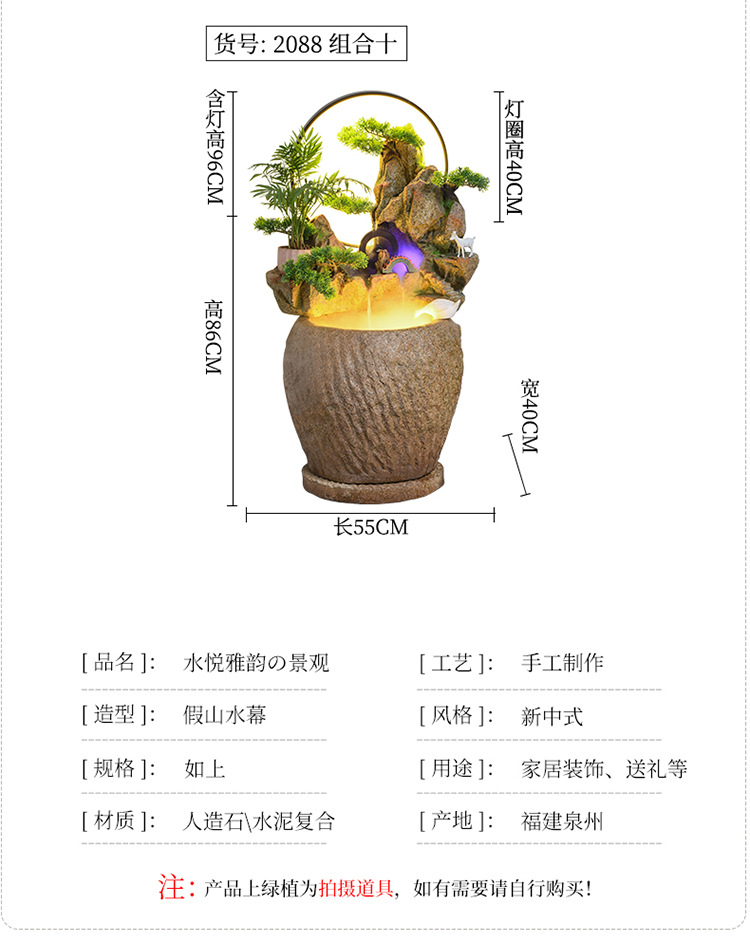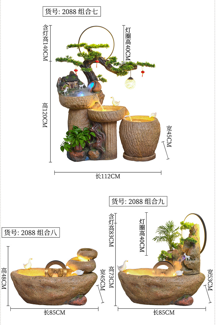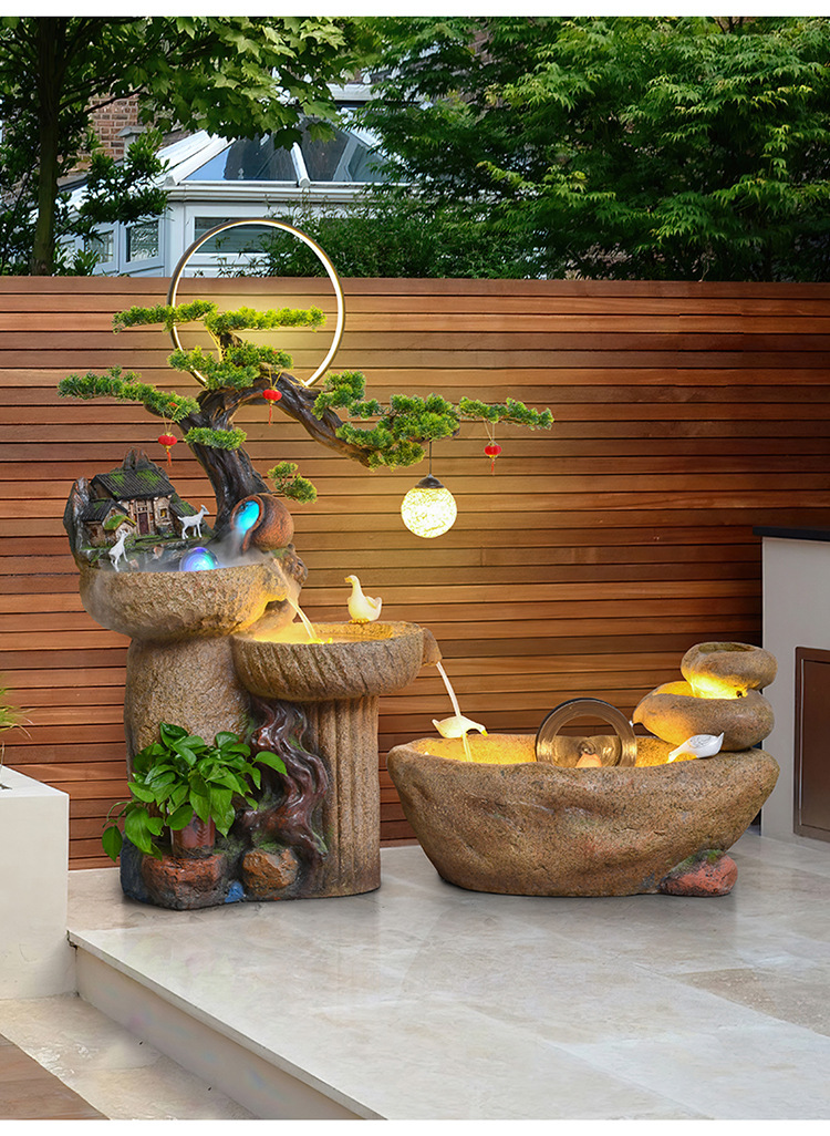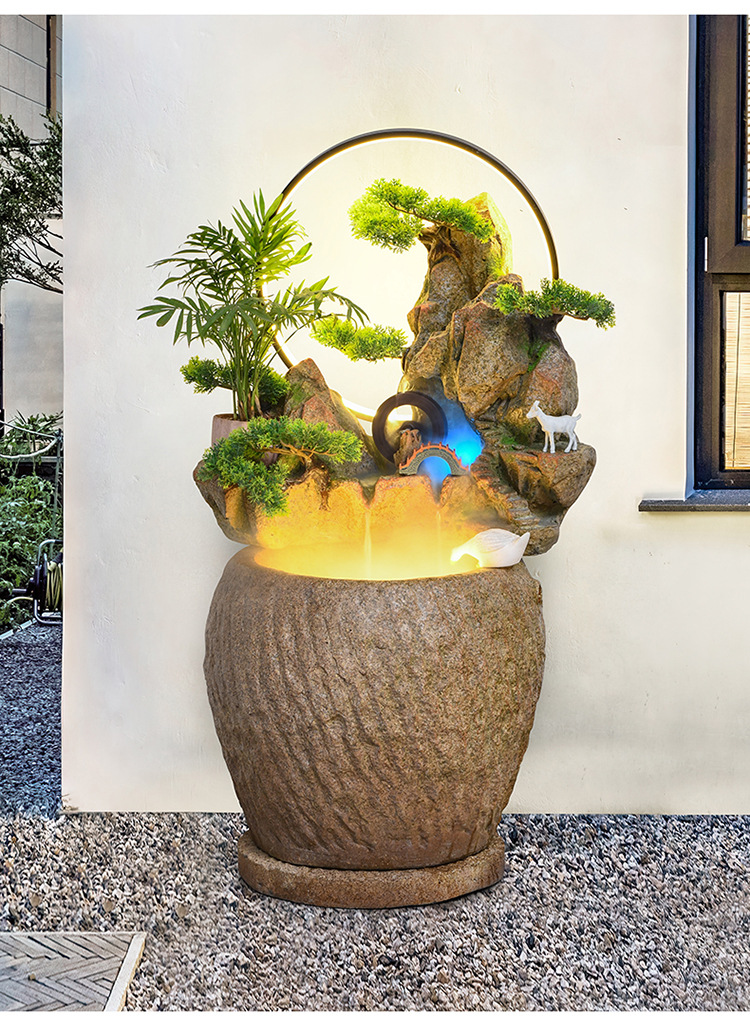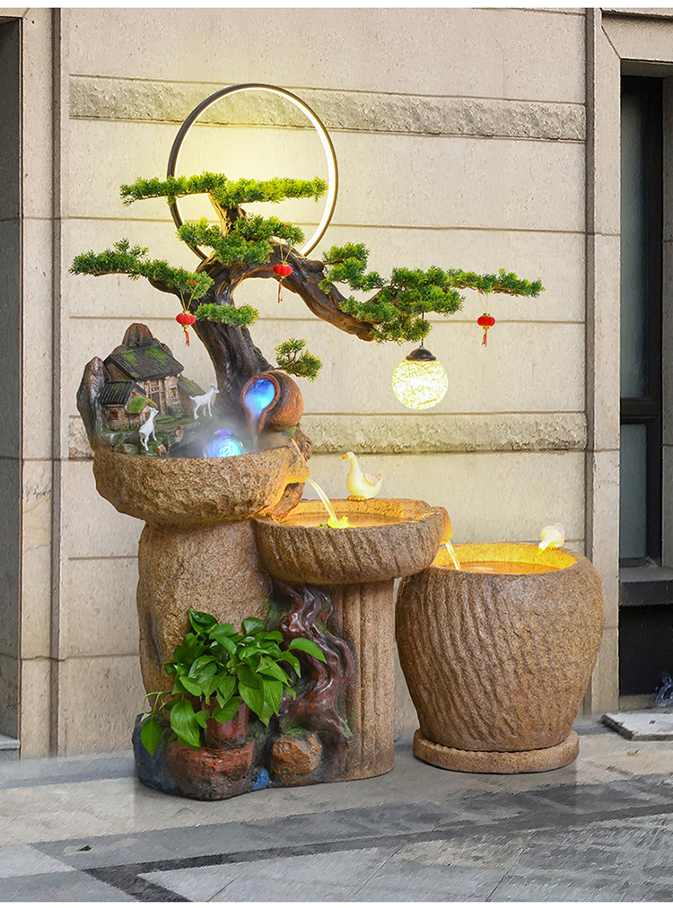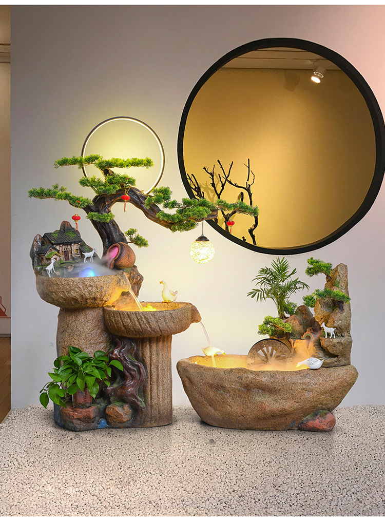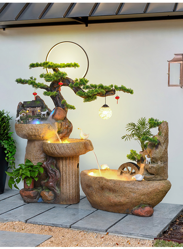 중국 스타일의 암석 흐르는 물 물고기 연못 분수 야외 풍수 휠 빌라 정원 발코니 실내 순환 물 돌 공장 장식품스토어 가기