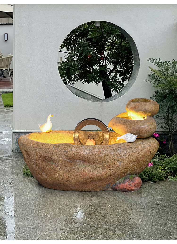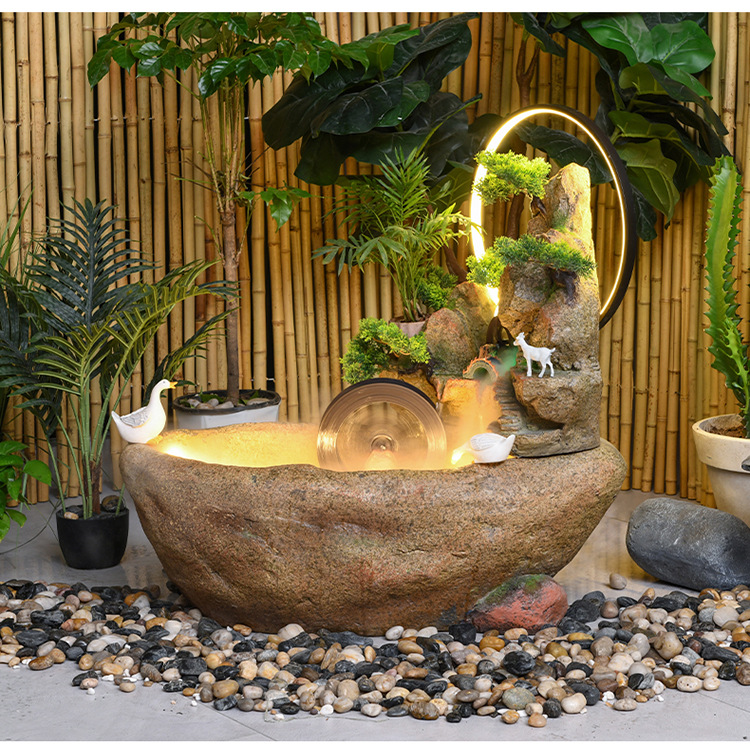 중국 스타일의 암석 흐르는 물 물고기 연못 분수 야외 풍수 휠 빌라 정원 발코니 실내 순환 물 돌 공장 장식품