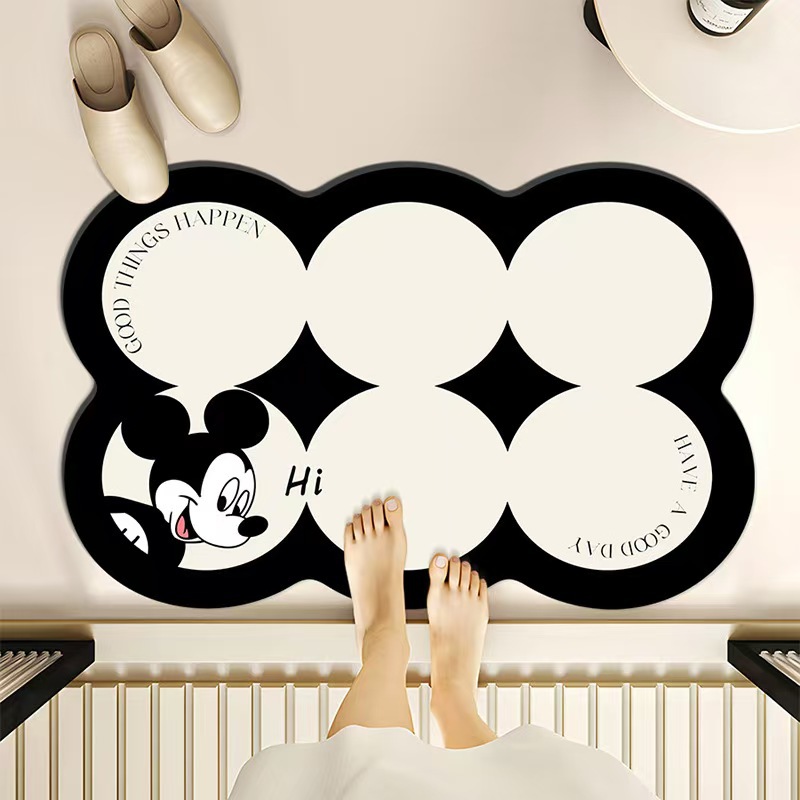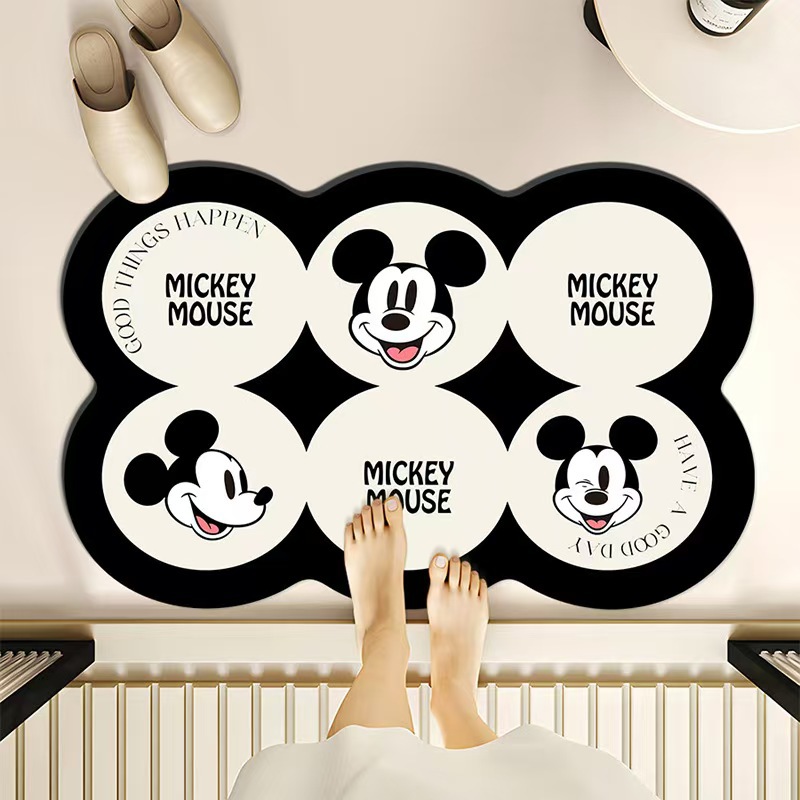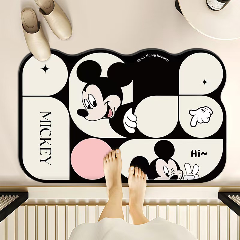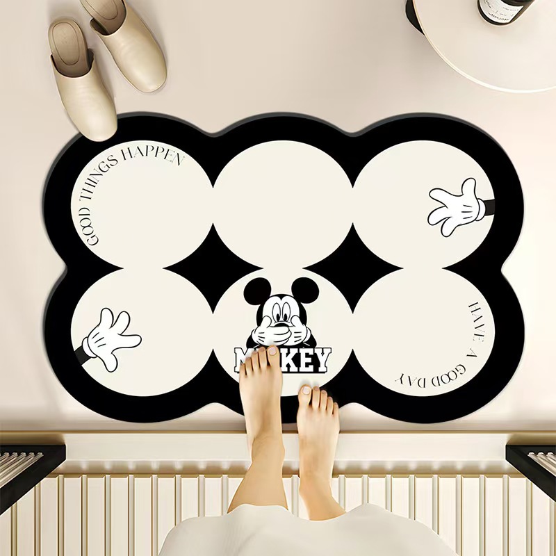 미키 욕실 흡수성 규조토 매트 만화 화장실 문 앞 쉽게 마르는 매트 가정용 오염 방지 미끄럼 방지 매트