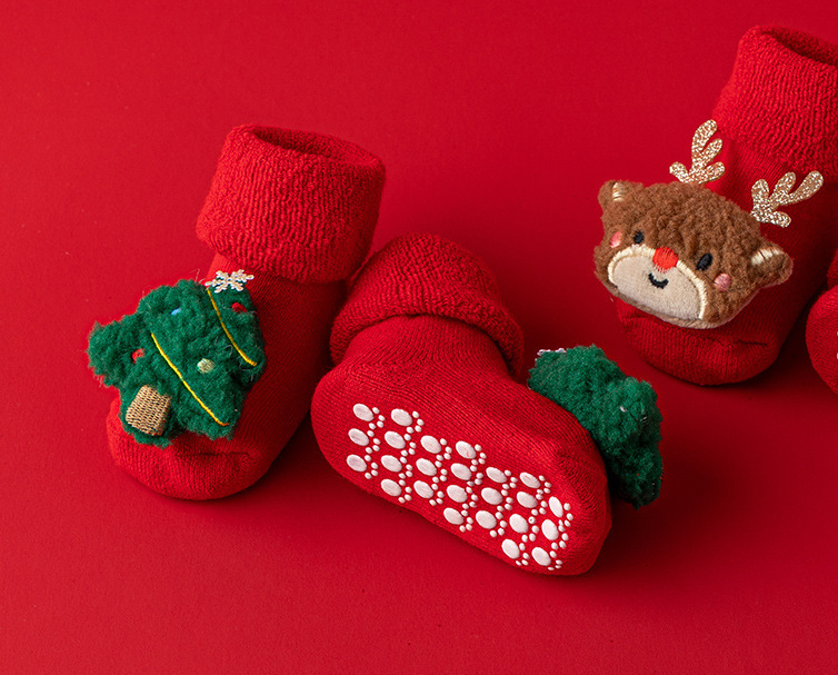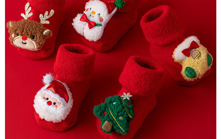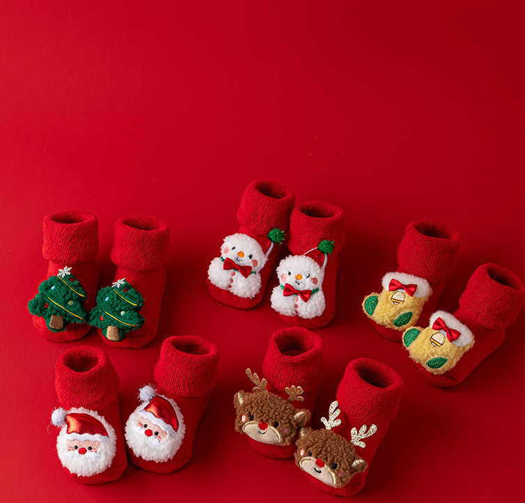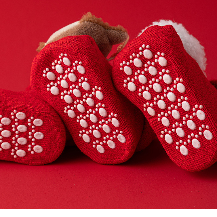 신생아 테리 양말 가을과 겨울 두껍게 미끄럼 방지 크리스마스 양말 빨간 만화 인형 아기 유아 바닥 양말