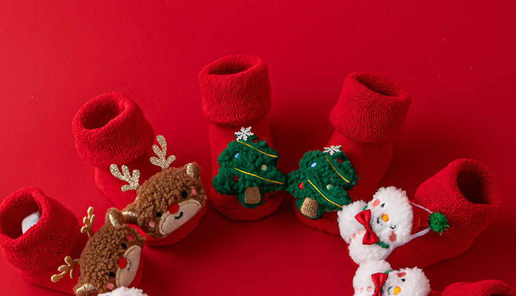 신생아 테리 양말 가을과 겨울 두껍게 미끄럼 방지 크리스마스 양말 빨간 만화 인형 아기 유아 바닥 양말스토어 가기