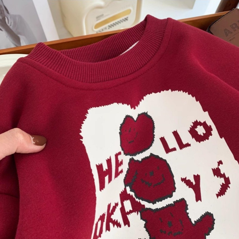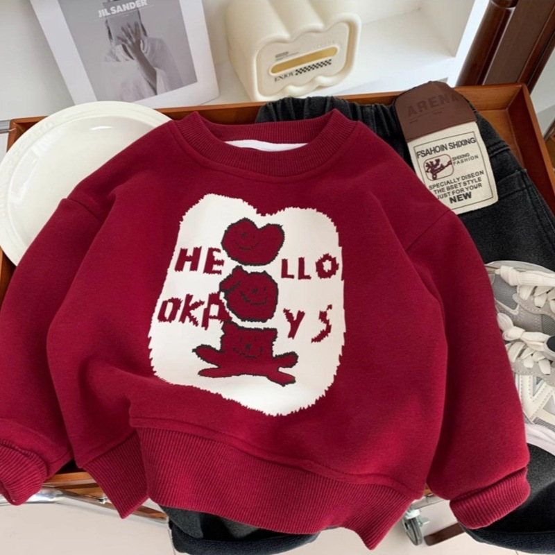 어린이 의류 2024 가을과 겨울 새로운 어린이 만화 기모 조커 소년 붉은 조끼의 한국 버전스토어 가기