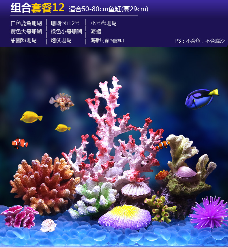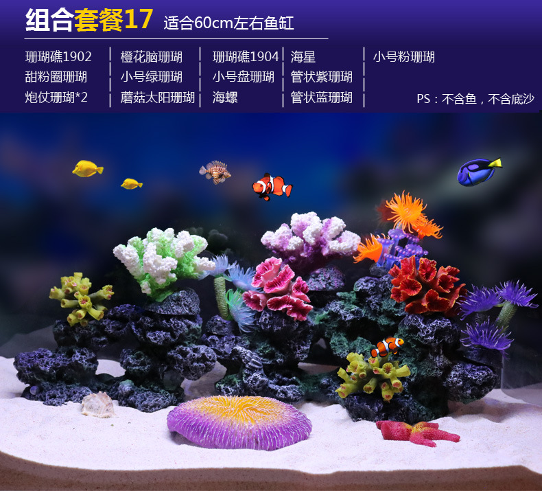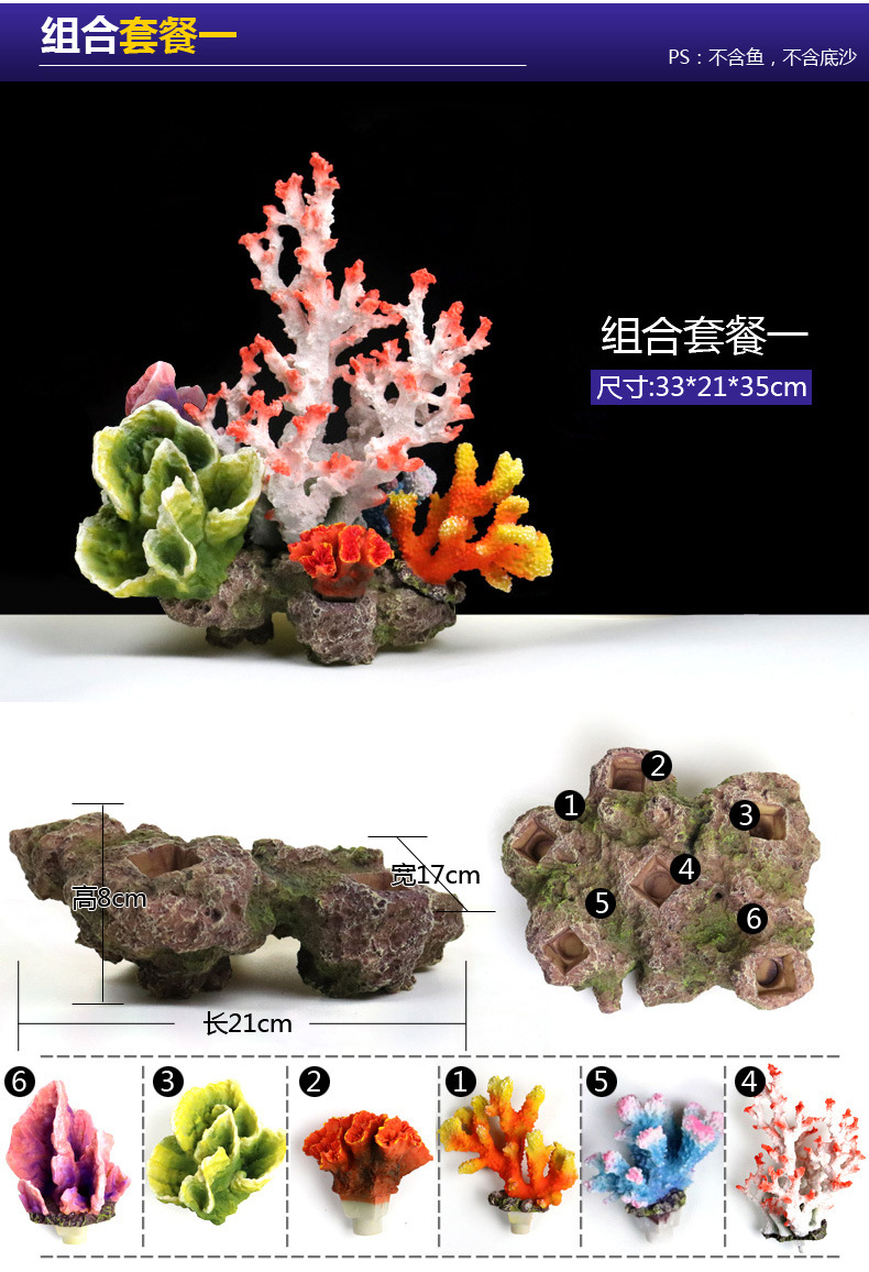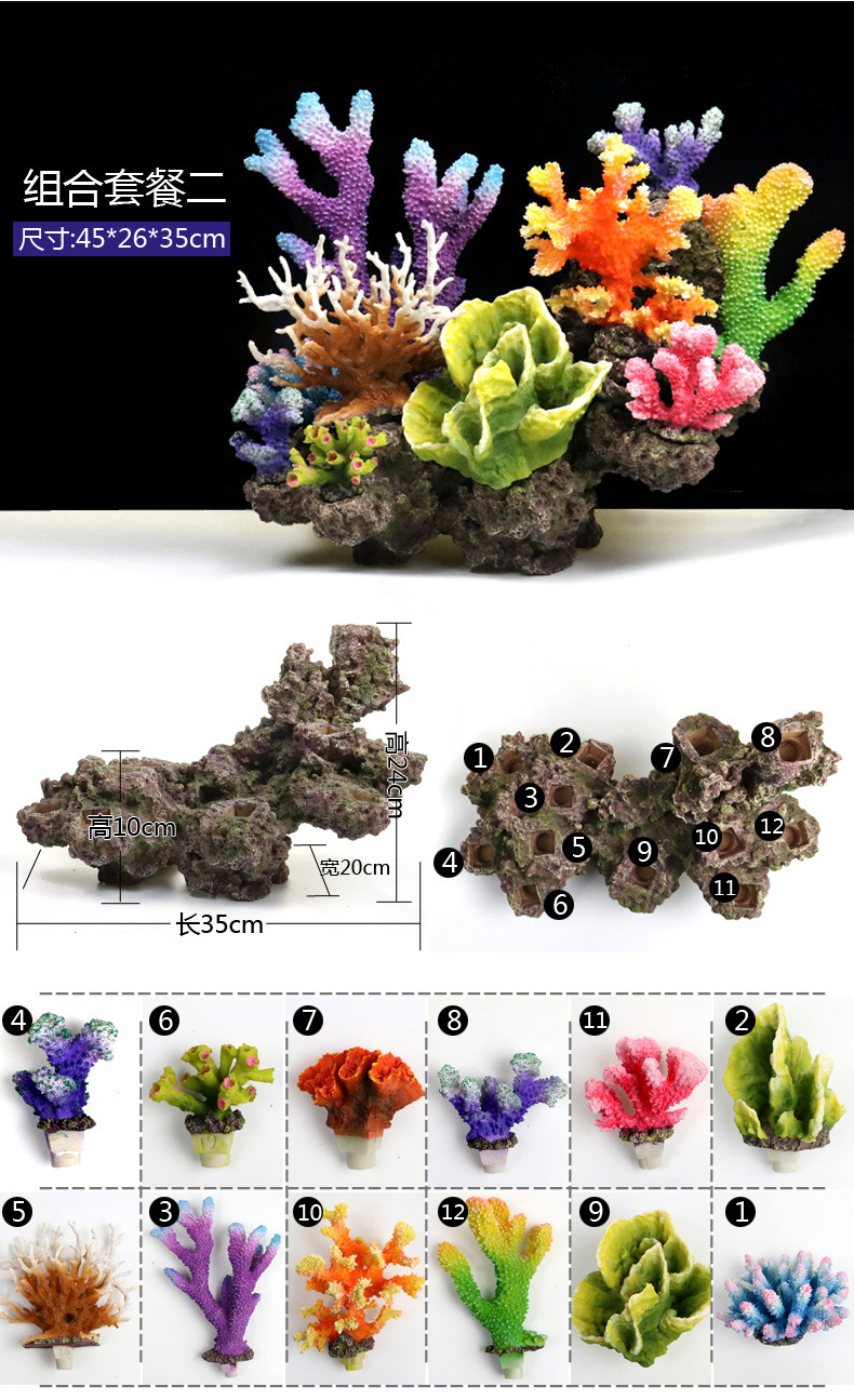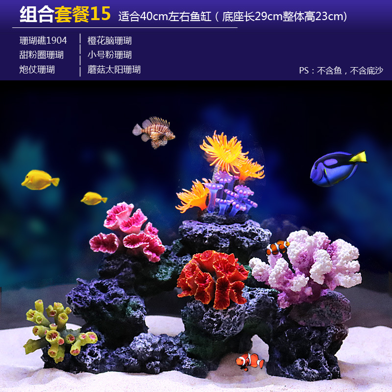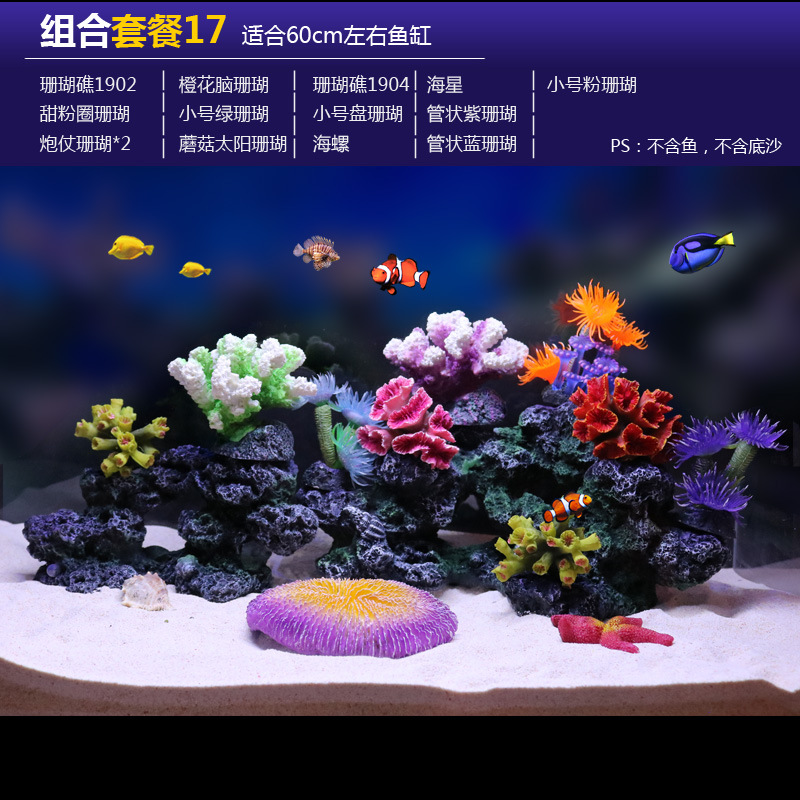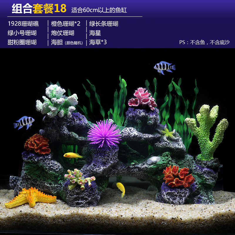 국경을 넘는 수족관 인공 산호 조경 풀 패키지 조합 수족관 해수 장식 가짜 수초 산호초 배경스토어 가기