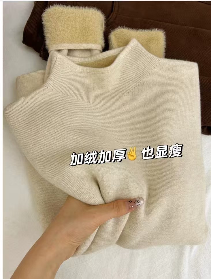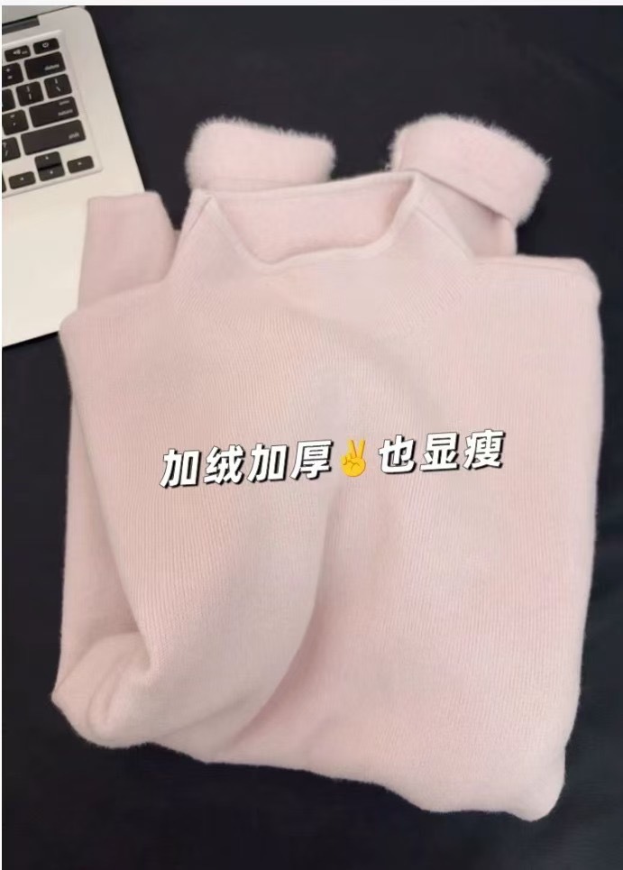 꽃 핑크 니트 스웨터 여성의 부드러운 왁스 밀크 후푸 작은 칼라 베이스 셔츠 2024 가을과 겨울 도파민 내부 탑스토어 가기