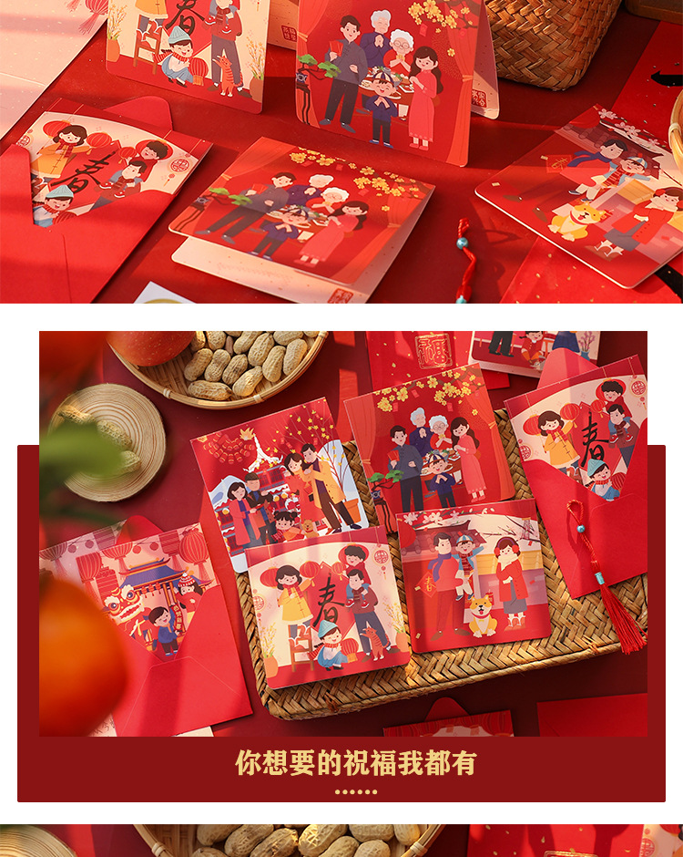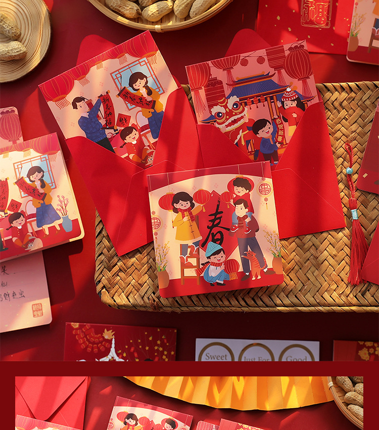 새해 인사말 카드 고급 감각 3 차원 설날 봄 축제 선물 메시지 카드 중국 스타일 축제 붉은 추수 감사절 카드스토어 가기