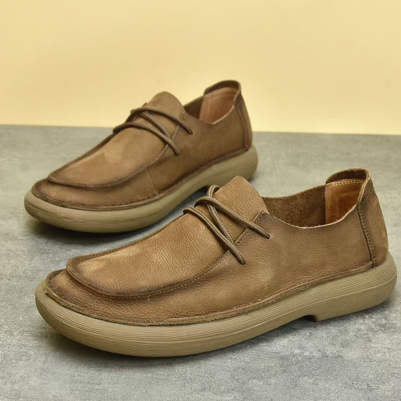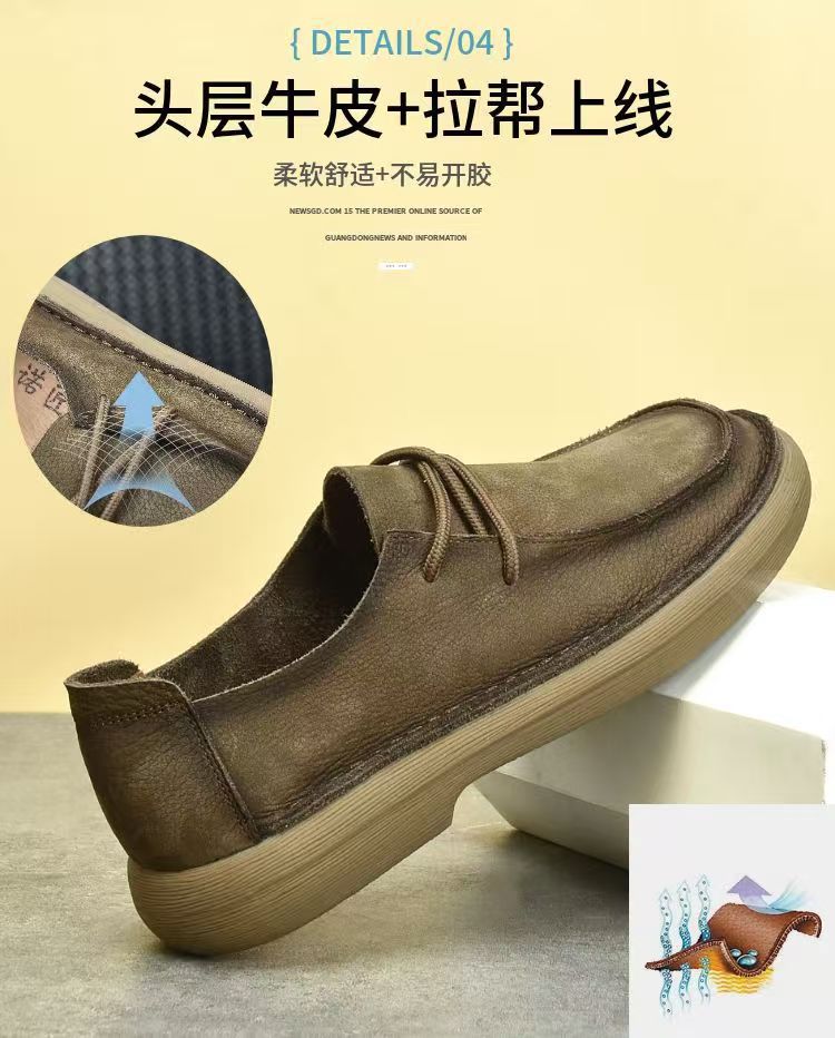 남성용 정품 가죽 캐주얼 신발 봄 와이드 헤드 누벅 가죽 신발 레이스 업 캐주얼 복고풍 트렌디 다목적 부드러운 가죽 부드러운 밑창 가죽 신발스토어 가기