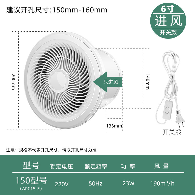 • E형 공기 흡입구 6inch 직경 150mm + 스위치 케이블