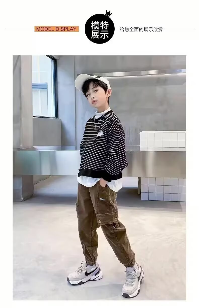 코듀로이 바지 소년 가을과 겨울 새로운 기모 바지 소년 캐주얼 바지 작업복 2024 유행 한 조각 양털 트렌드