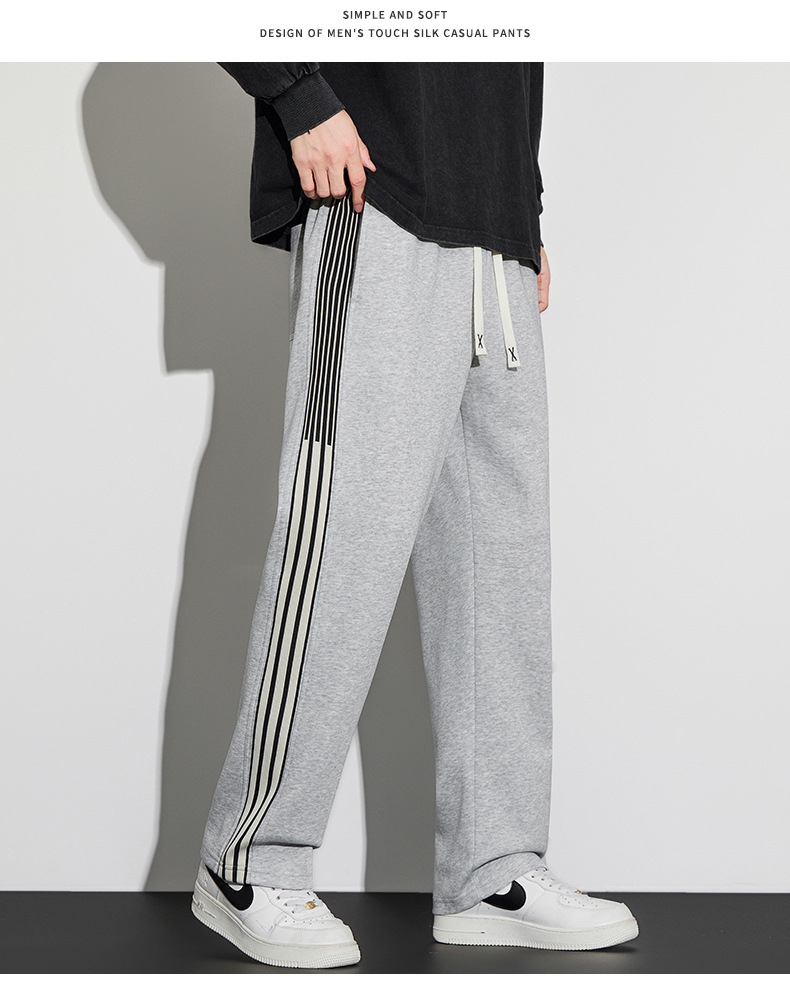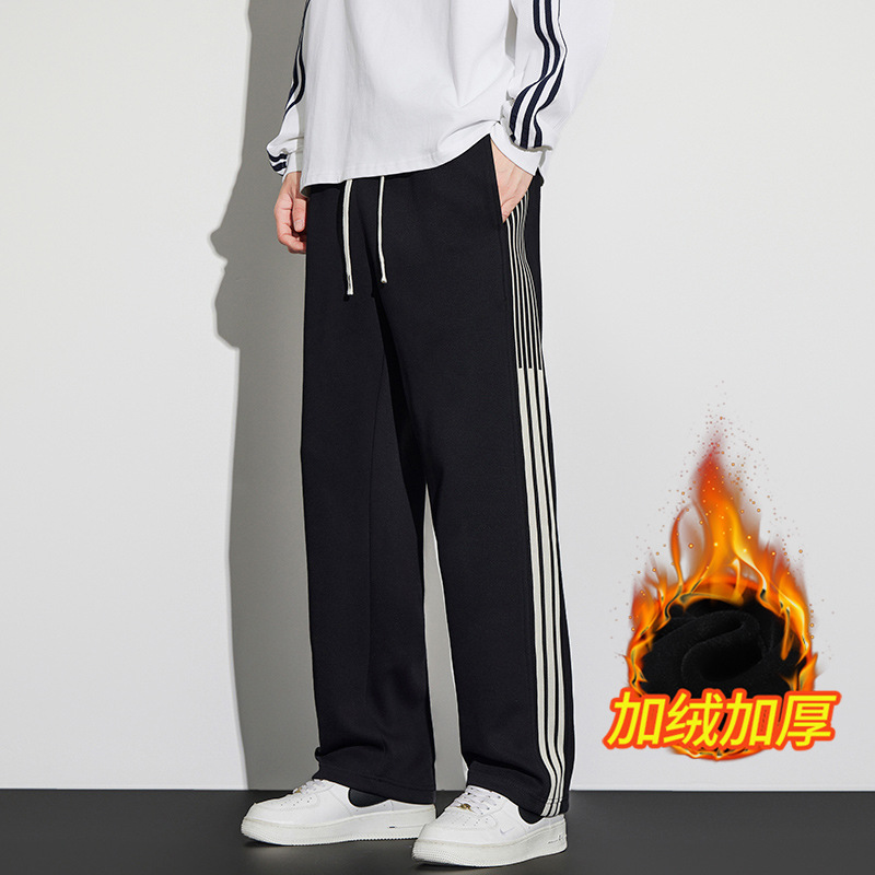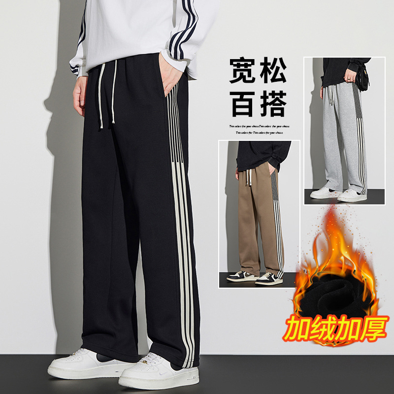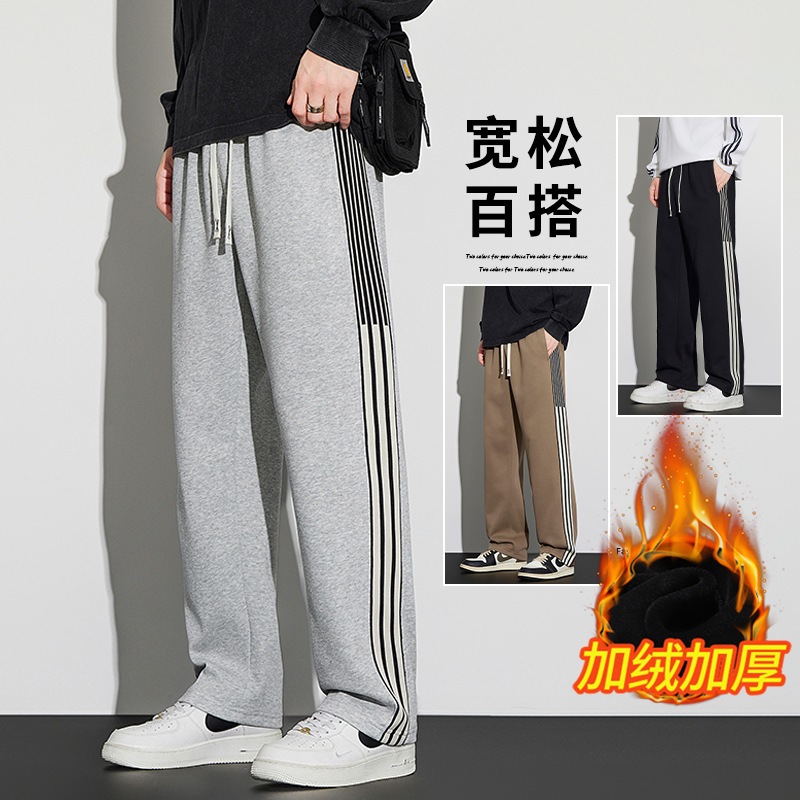 봄과 가을 기모 캐주얼 바지 남자의 유행 투약 느슨한 스트레이트 바지 남자 유행 브랜드 스포츠 올 매치 바지 플러스 사이즈