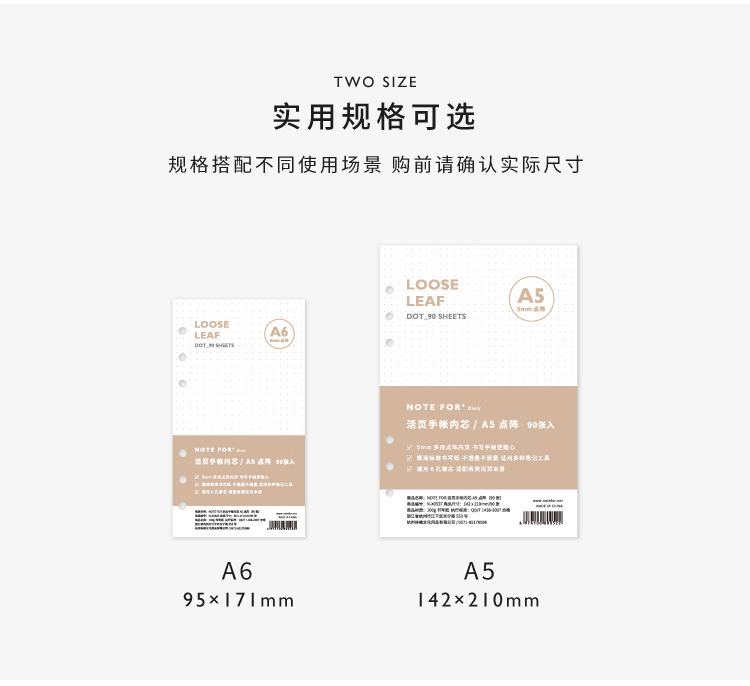 Z 도트 매트릭스 빈 두껍게 A6A5 내부 사용 2024 새로운 느슨한 잎 손 계정 내부 코어 수평 라인 사각형 노트북 Qin Xuan스토어 가기