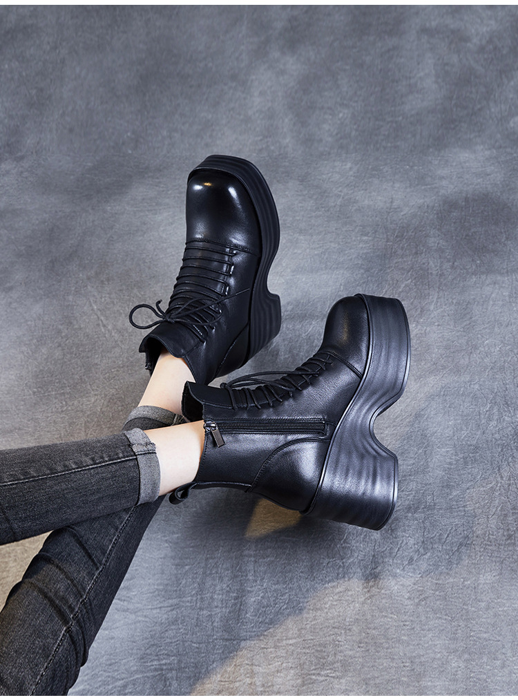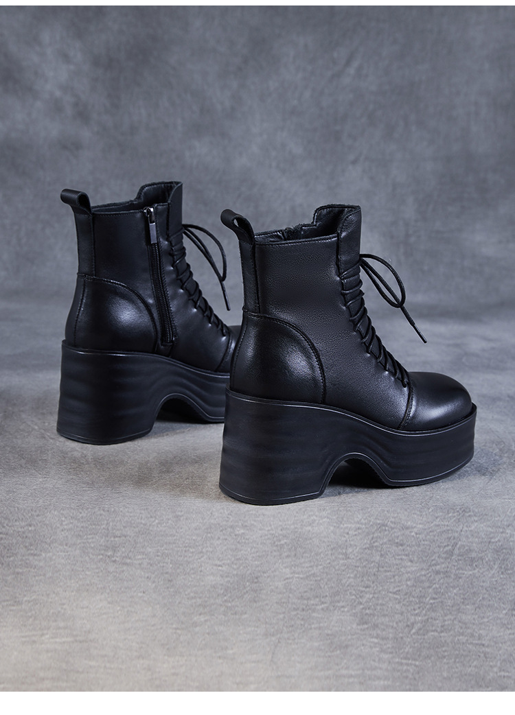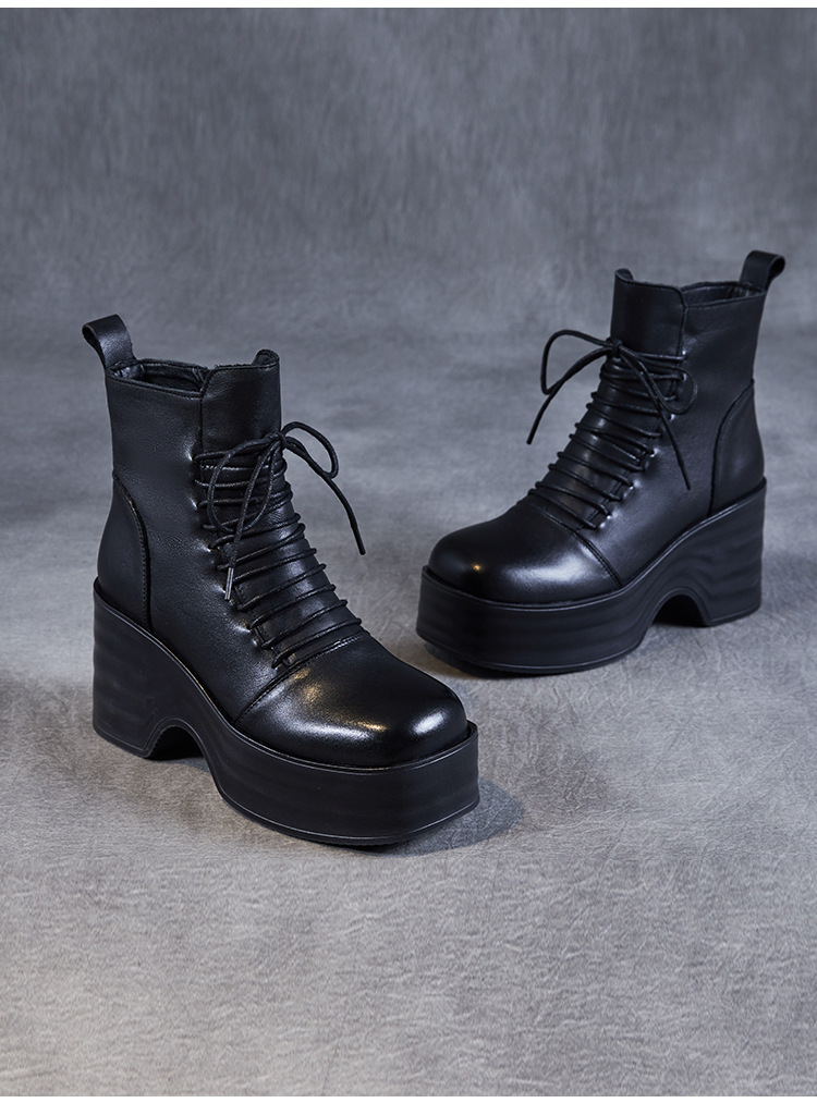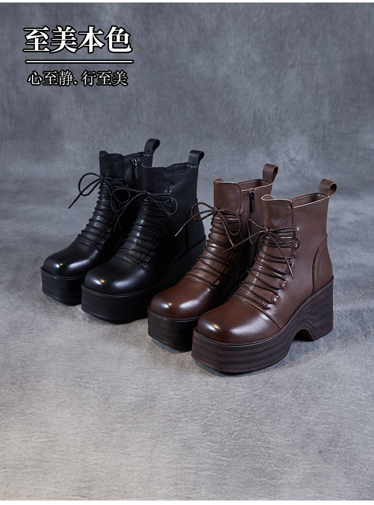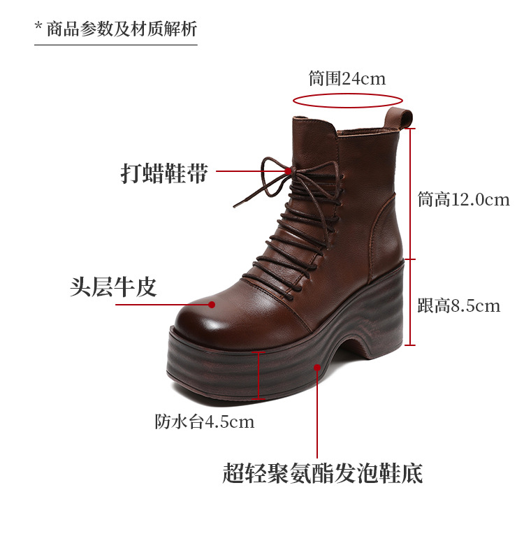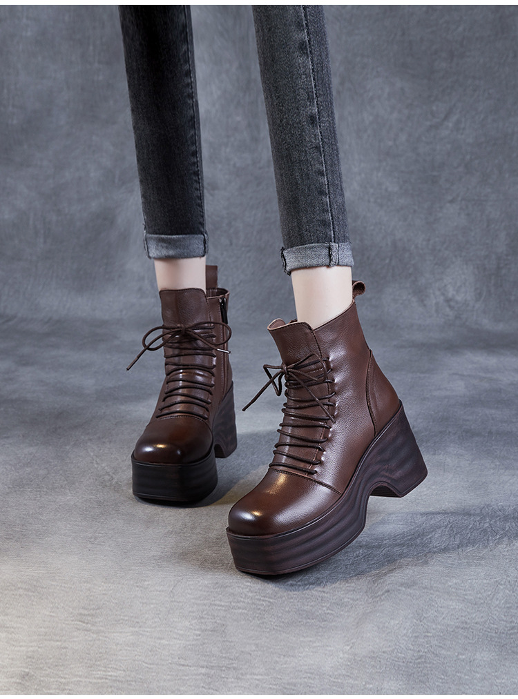 2024 가을과 겨울을위한 여성용 마틴 레트로 레이스 업 플랫폼 부츠