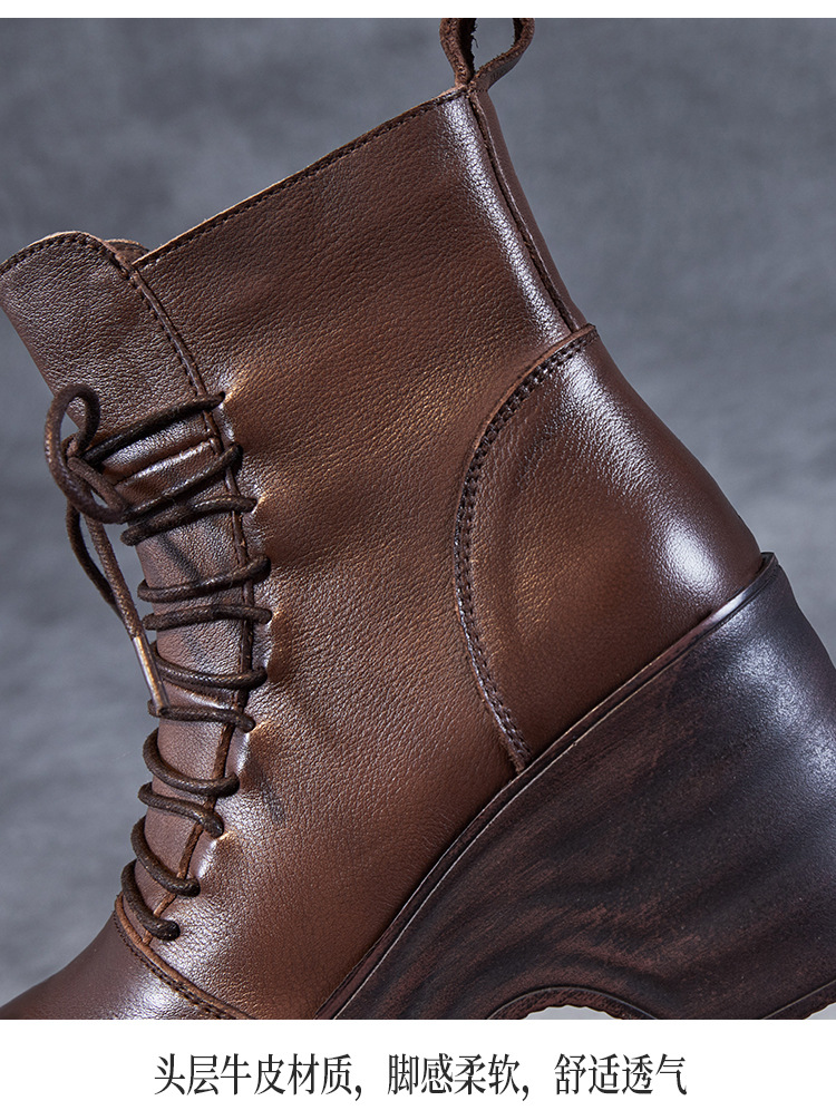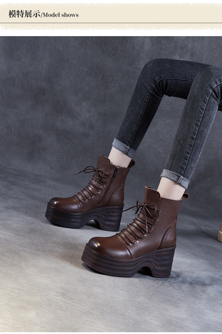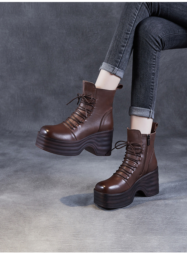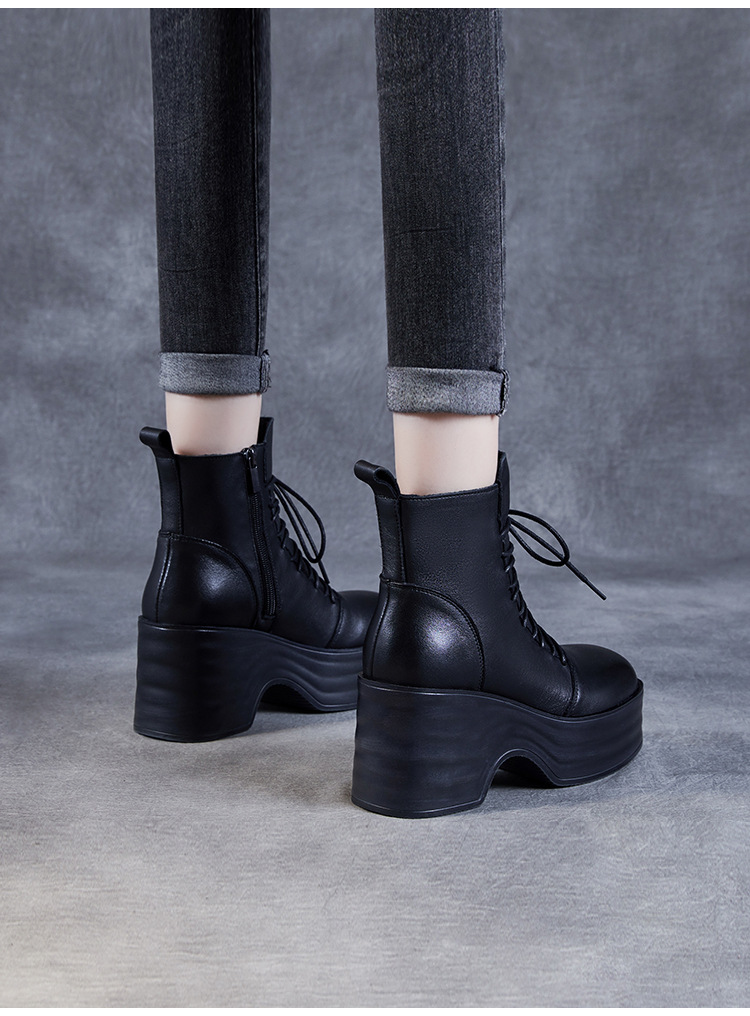 2024 가을과 겨울을위한 여성용 마틴 레트로 레이스 업 플랫폼 부츠스토어 가기