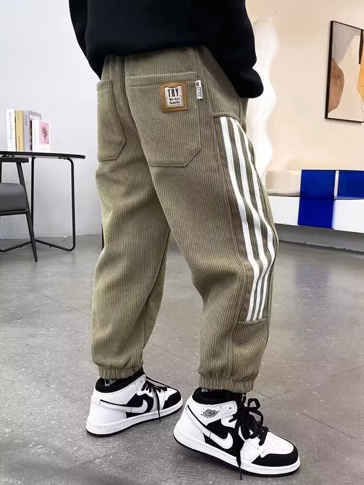 소년 바지 가을과 겨울 캐주얼 바지 Corduroy 2024 봄과 가을 새로운 어린이 봄 중 큰 어린이 캐주얼 바지
