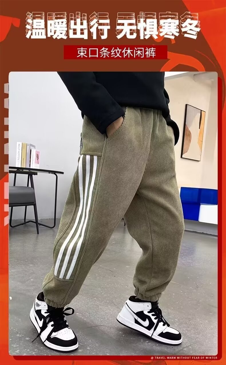 소년 바지 가을과 겨울 캐주얼 바지 Corduroy 2024 봄과 가을 새로운 어린이 봄 중 큰 어린이 캐주얼 바지스토어 가기