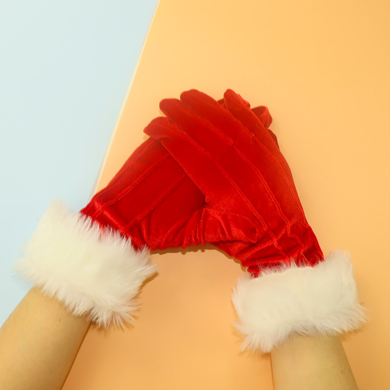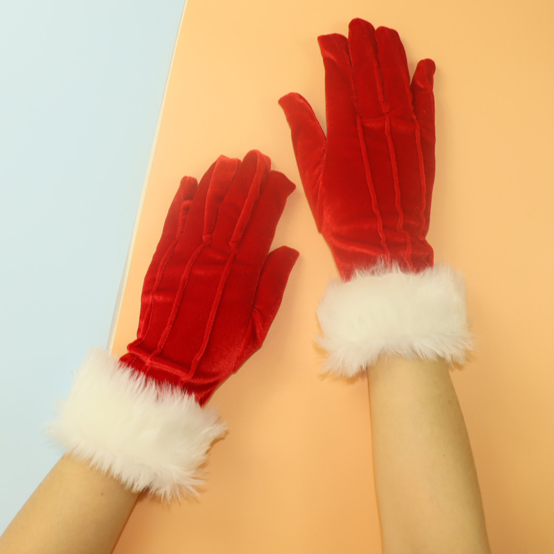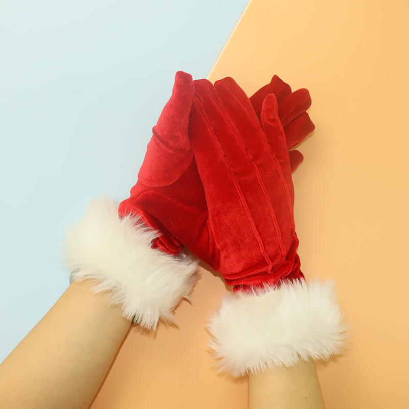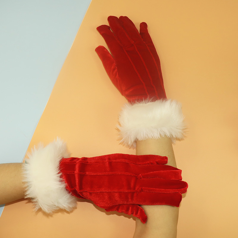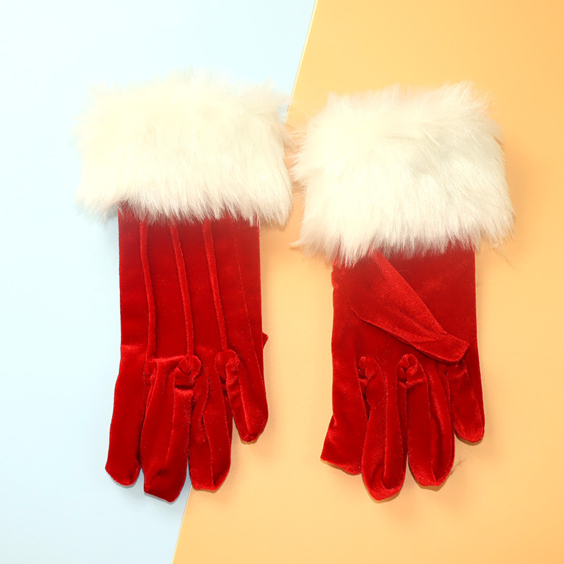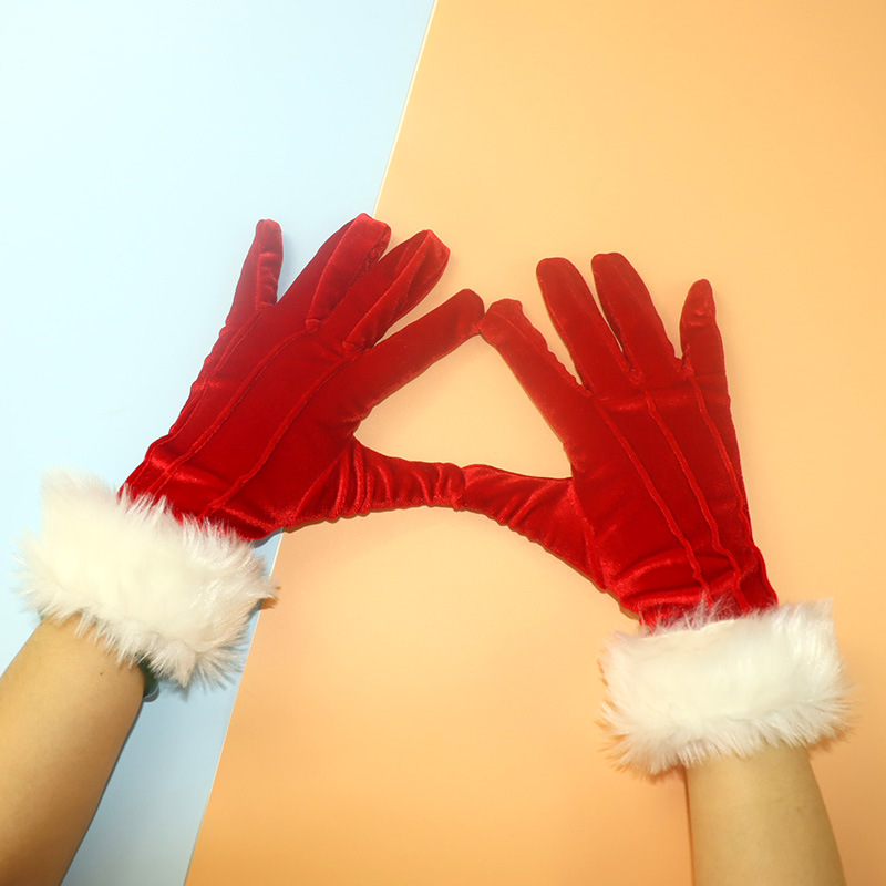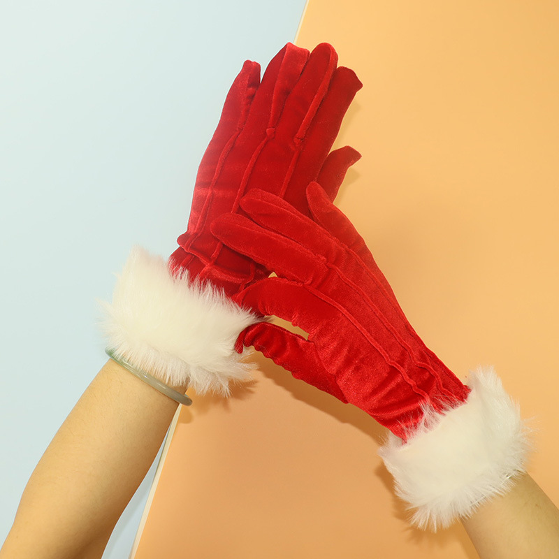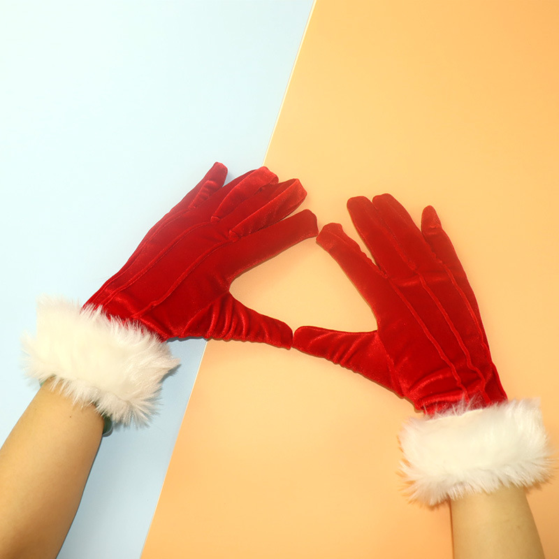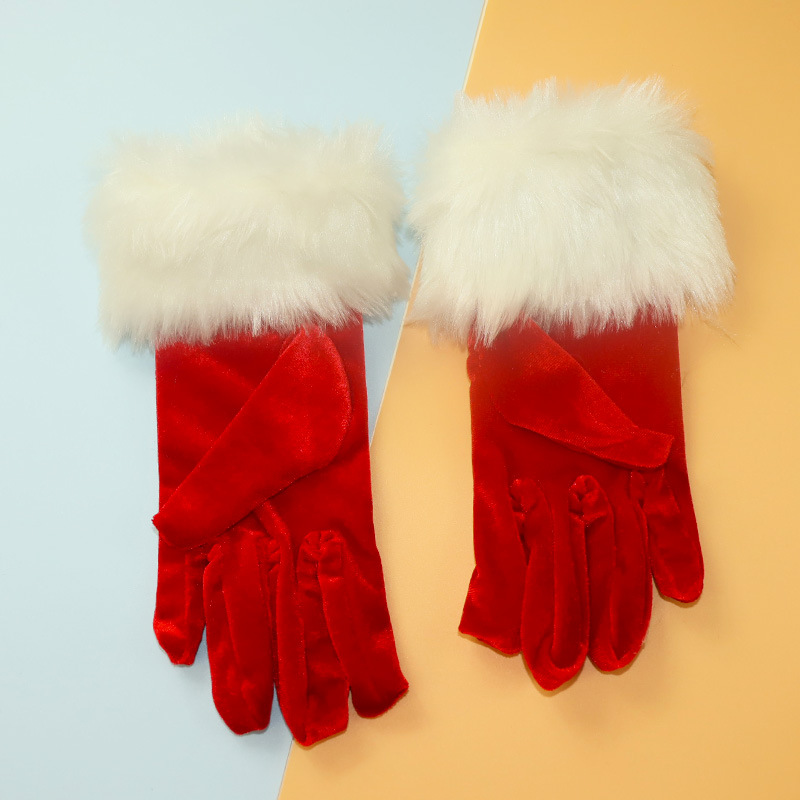 크리스마스 파티 에티켓 성능 장갑 새로운 짧은 골드 벨벳과 화이트 울 입 따뜻한 장갑
