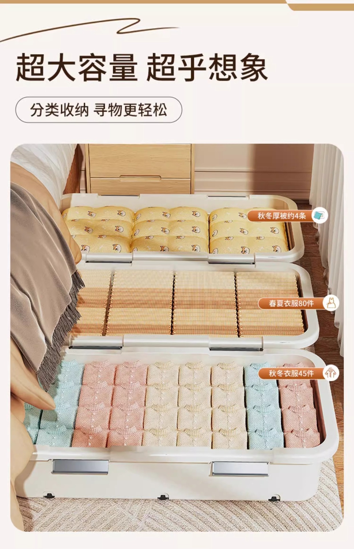 침대 바닥 저장 상자 가정용 서랍 유형 대용량 의류 보관 마감 상자 침실 이불 플라스틱 저장 상자스토어 가기