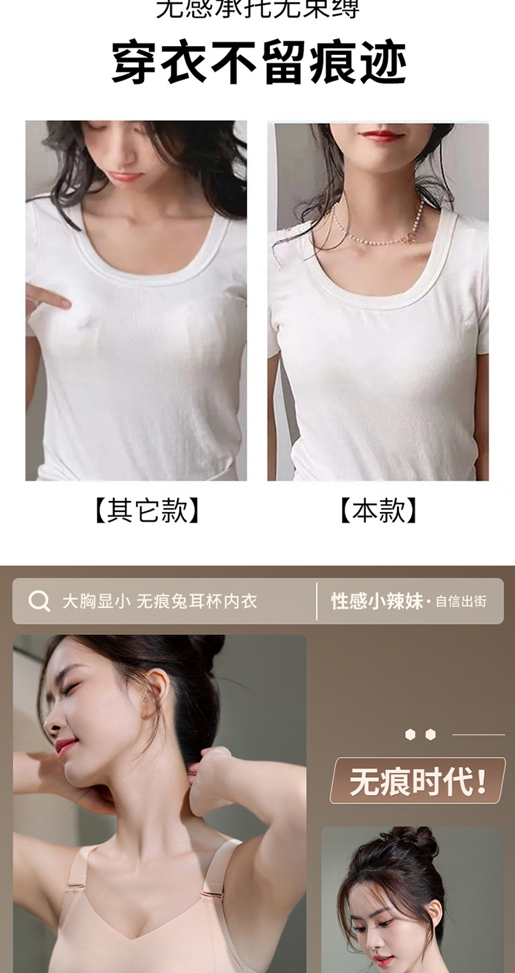 통통녀 Tracless 속옷 큰 가슴 작은 가려움증 토끼 귀 처짐 방지 패러 마리 유방 폐쇄 스포츠 브라, 스틸 링 뷰티 백 없음스토어 가기