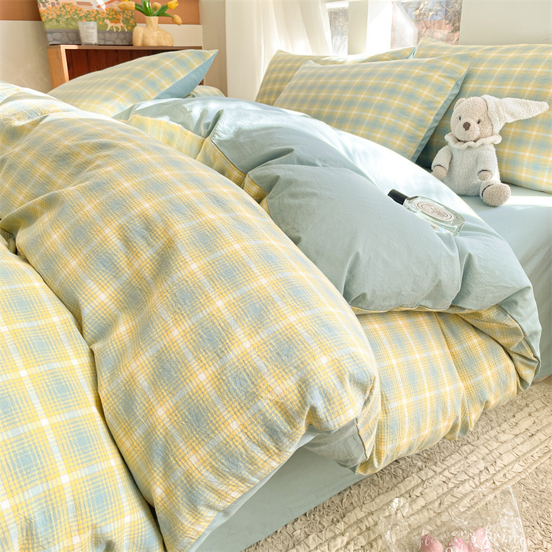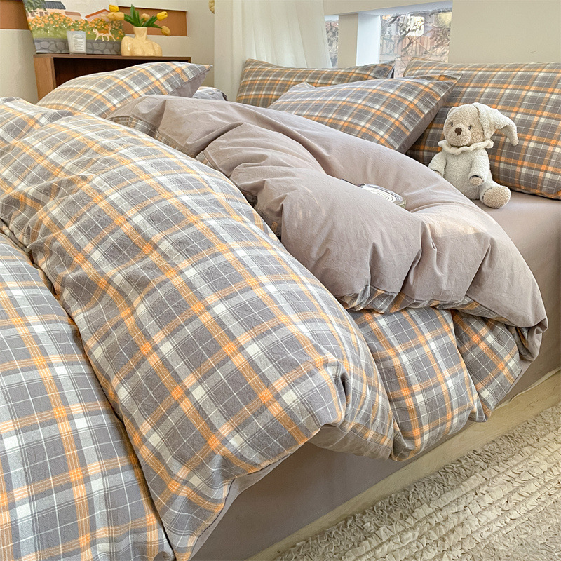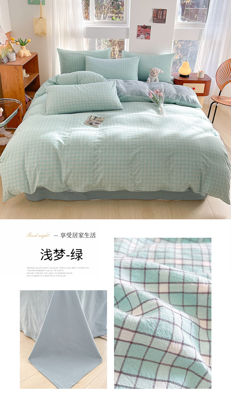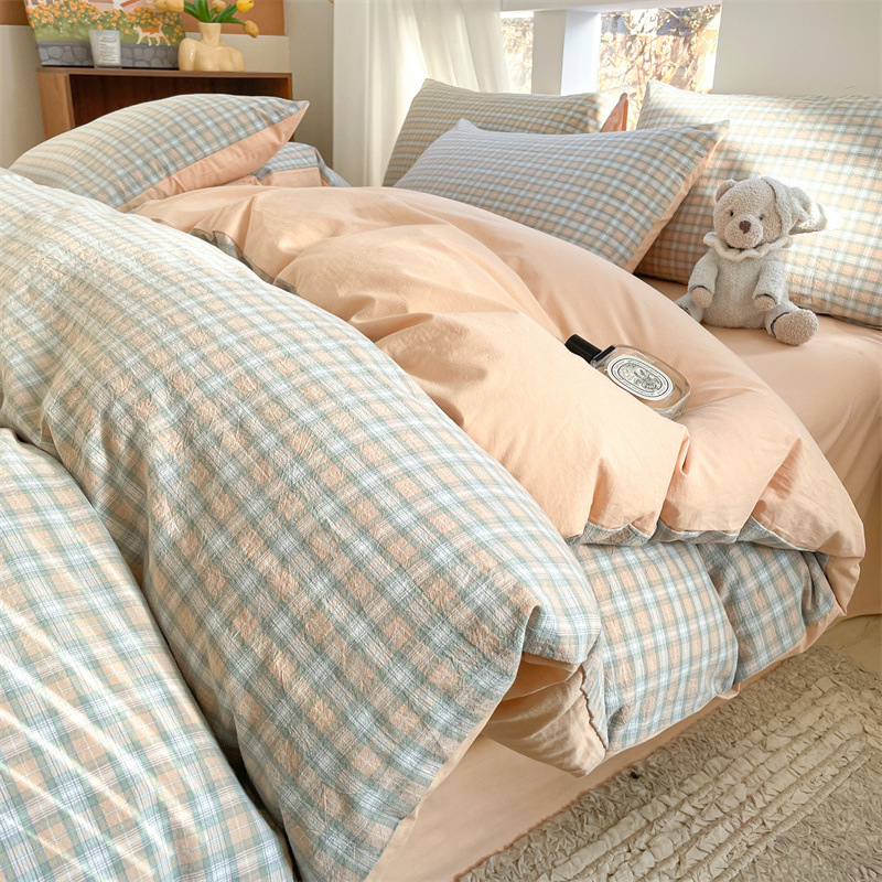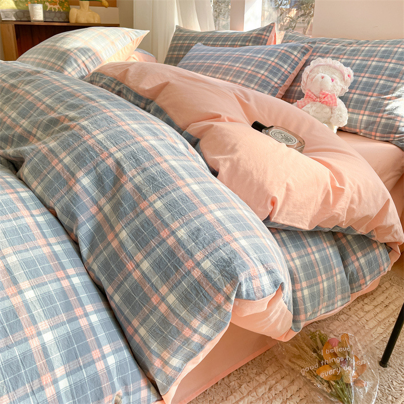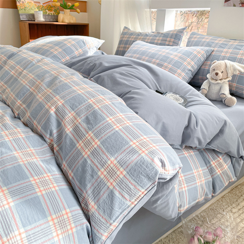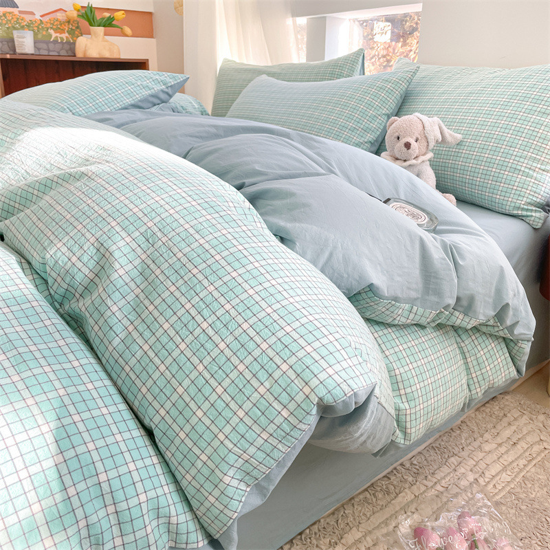 순수한면 7 피스 침구 이불 커버 풀 세트 침대 시트 베개 세트 학생 기숙사 싱글 5 피스 세트스토어 가기