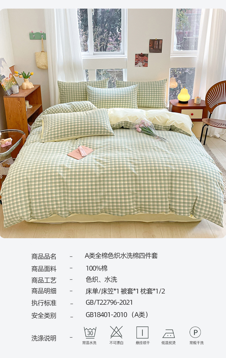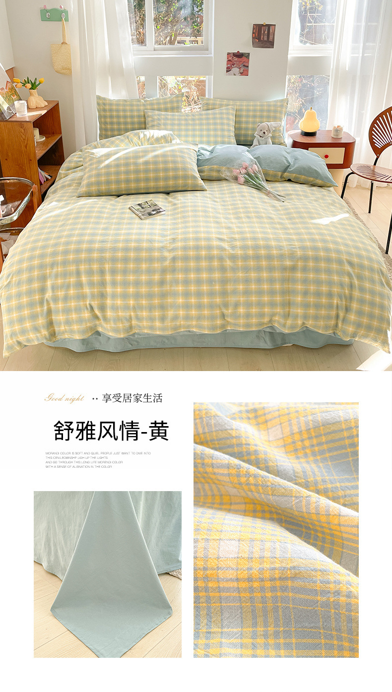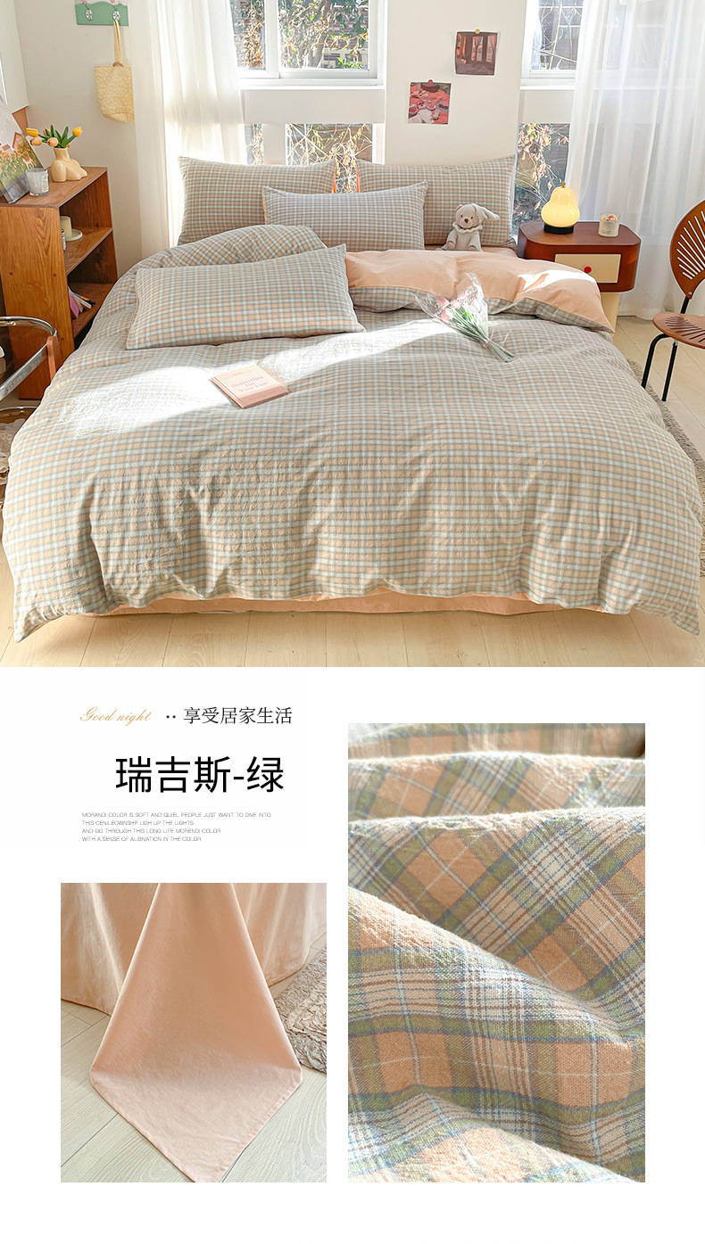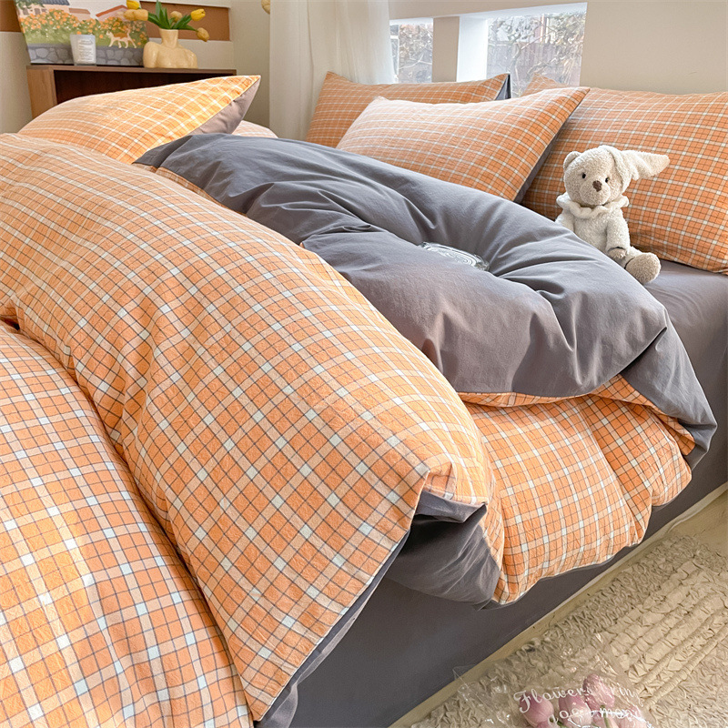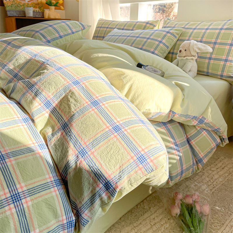 순수한면 7 피스 침구 이불 커버 풀 세트 침대 시트 베개 세트 학생 기숙사 싱글 5 피스 세트스토어 가기