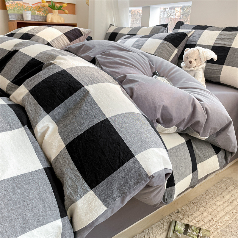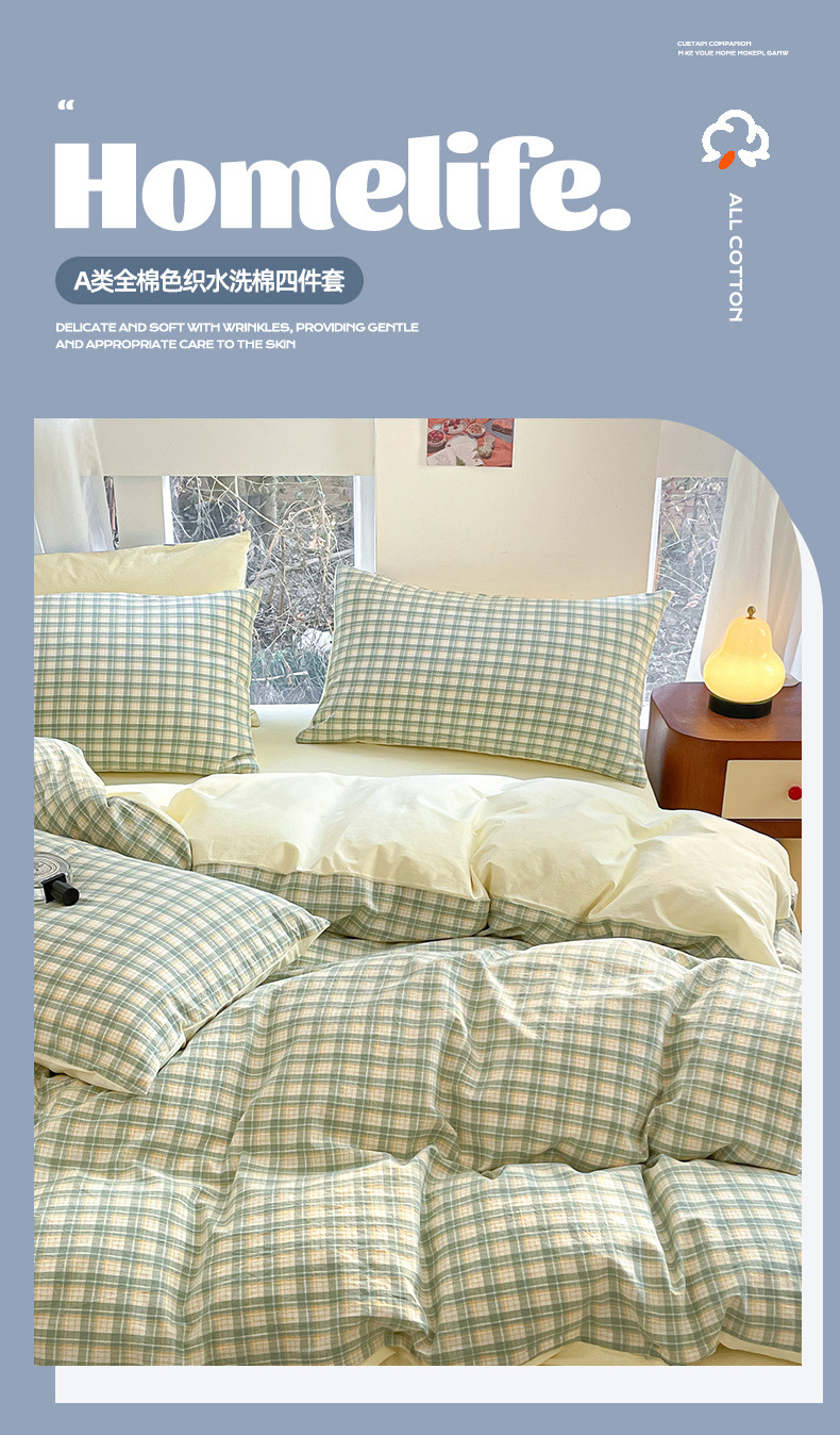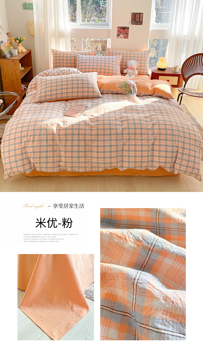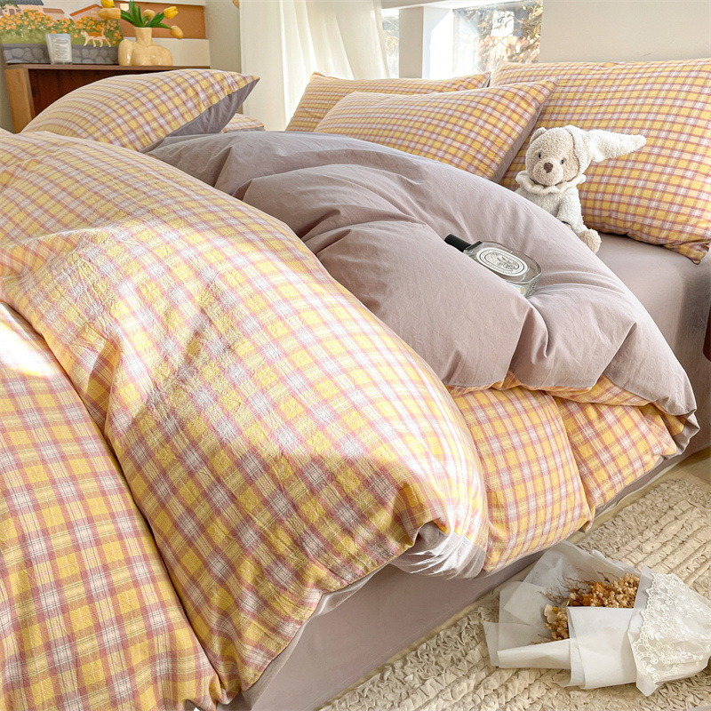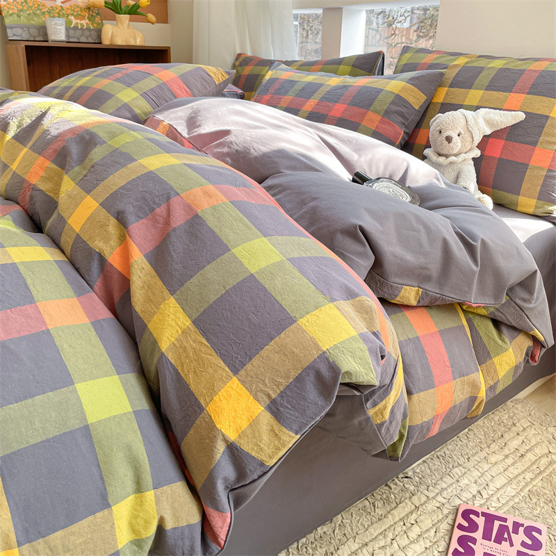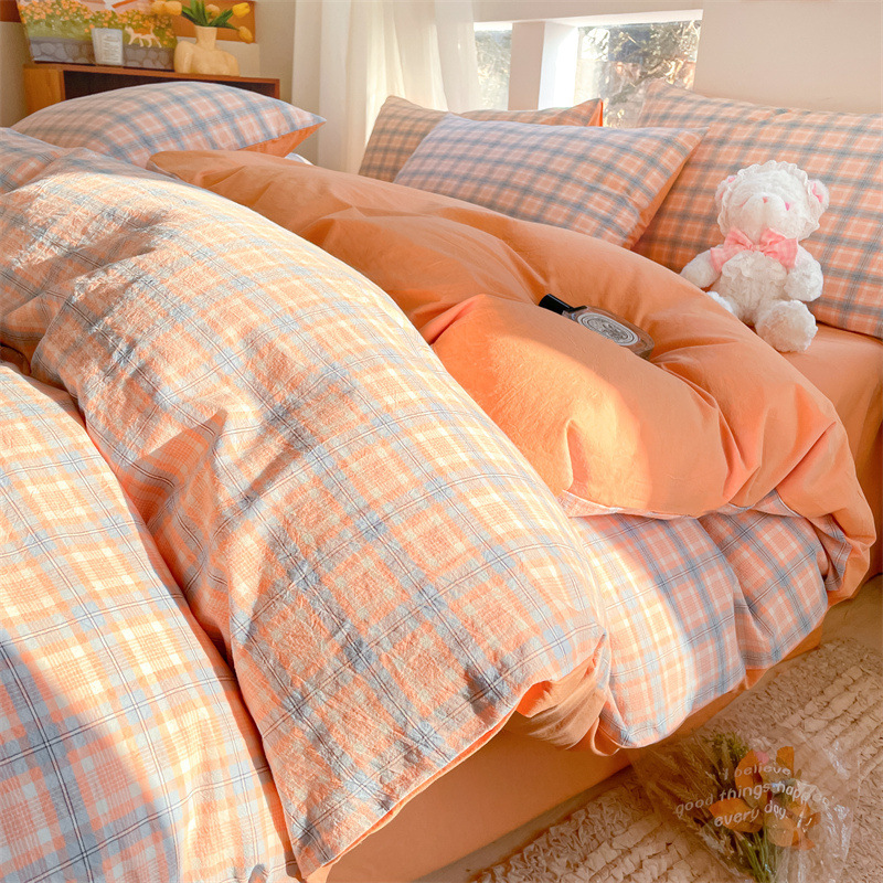 순수한면 7 피스 침구 이불 커버 풀 세트 침대 시트 베개 세트 학생 기숙사 싱글 5 피스 세트스토어 가기
