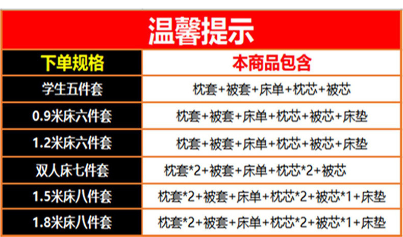 • 1.2 6피스 침대 세트(이불 3kg 개 + 베개 코어 + 매트리스)