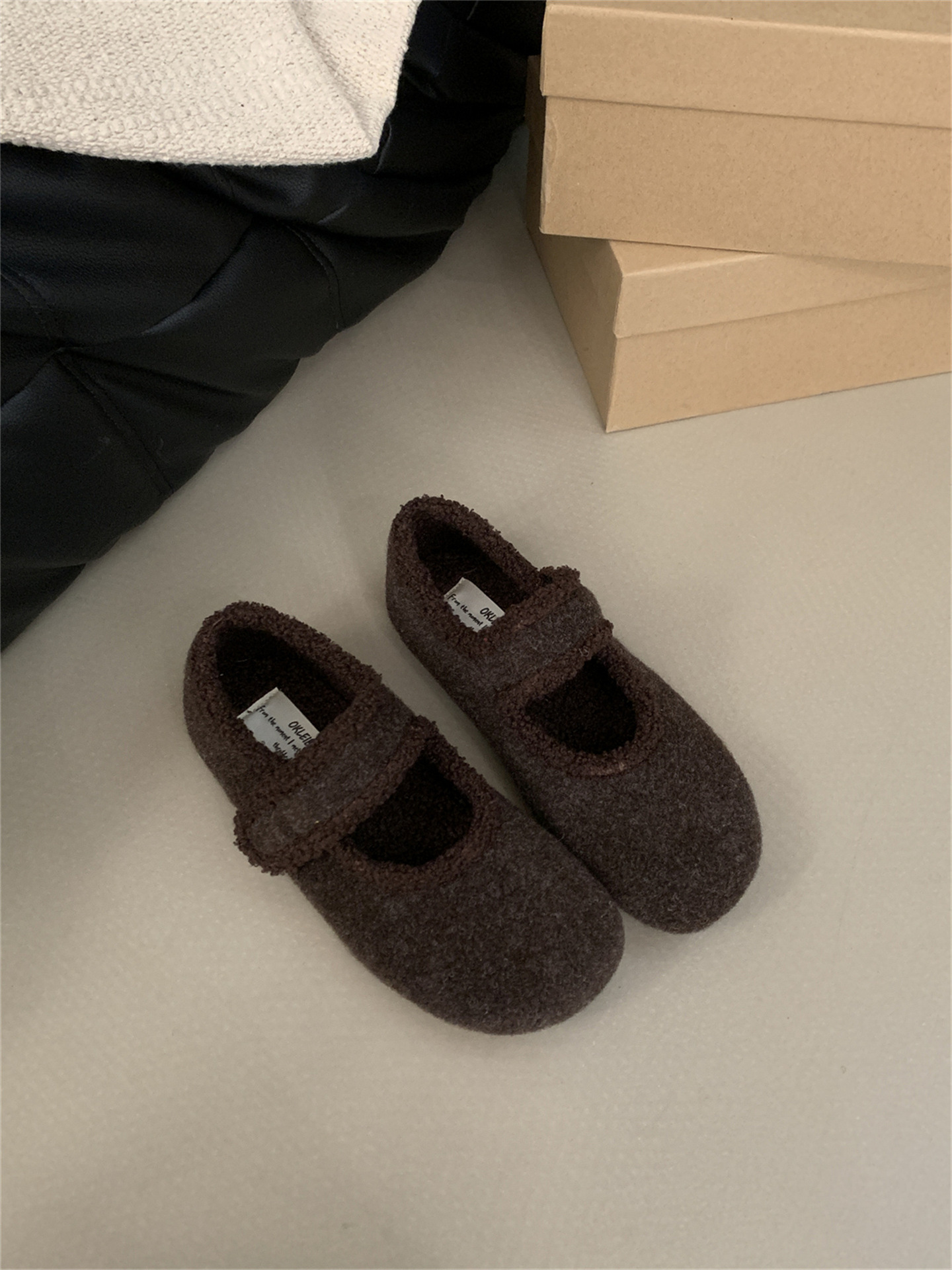 여성 기모 그레이 제인 마오 신발 여성 겨울 의상 한국식 모직화 신발스토어 가기