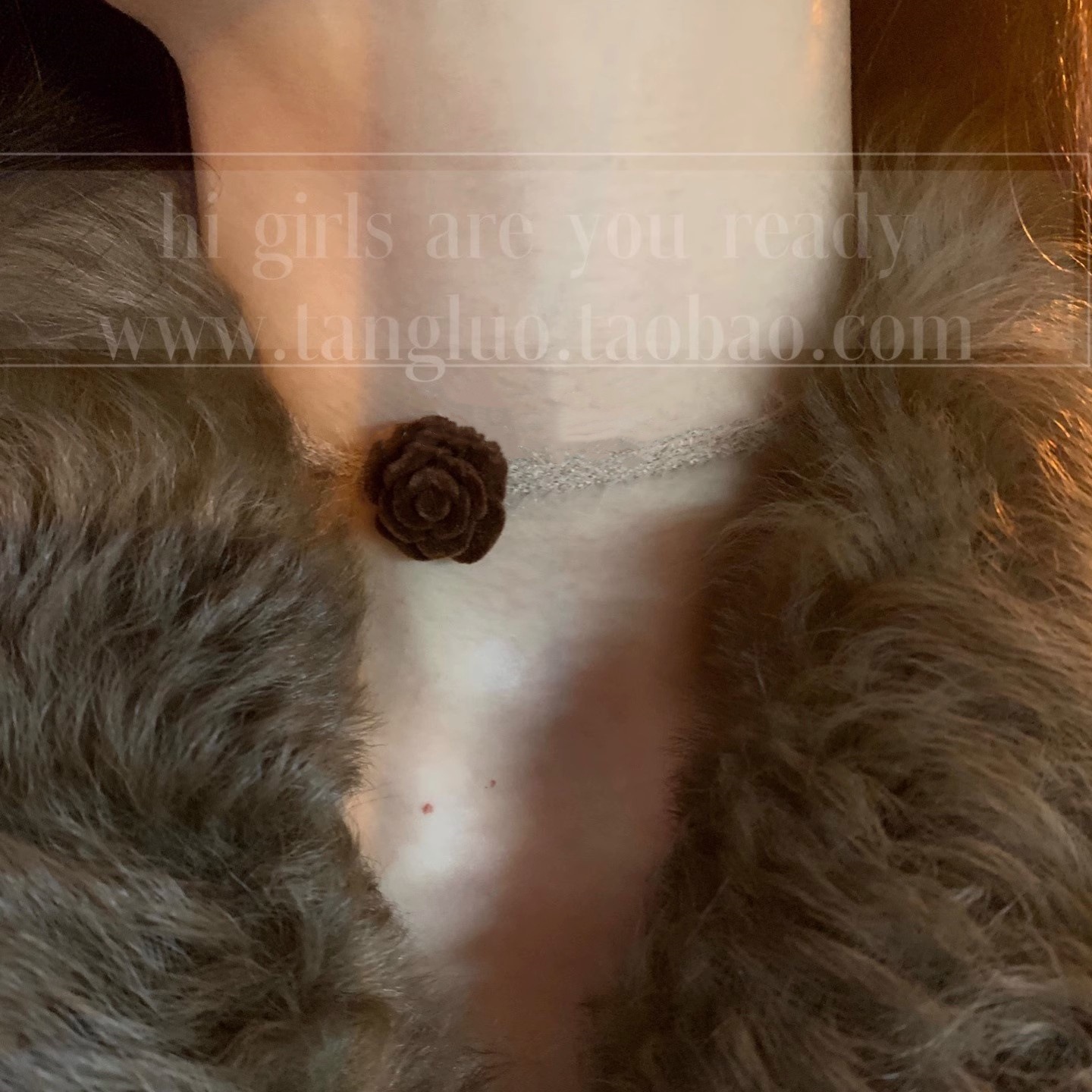 모피 다크 브라운 로즈 초커 목걸이 체인 여성의 가을과 겨울 간단한 여성 쇄골 체인 고급 얇은 유행 칼라스토어 가기