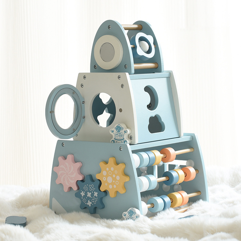 국경 간 아기 3 대 1 로켓 푸시 타워 아기 퍼즐 조기 교육 어린이 나무 장난감을 달래기 위해 육면체 느낌스토어 가기