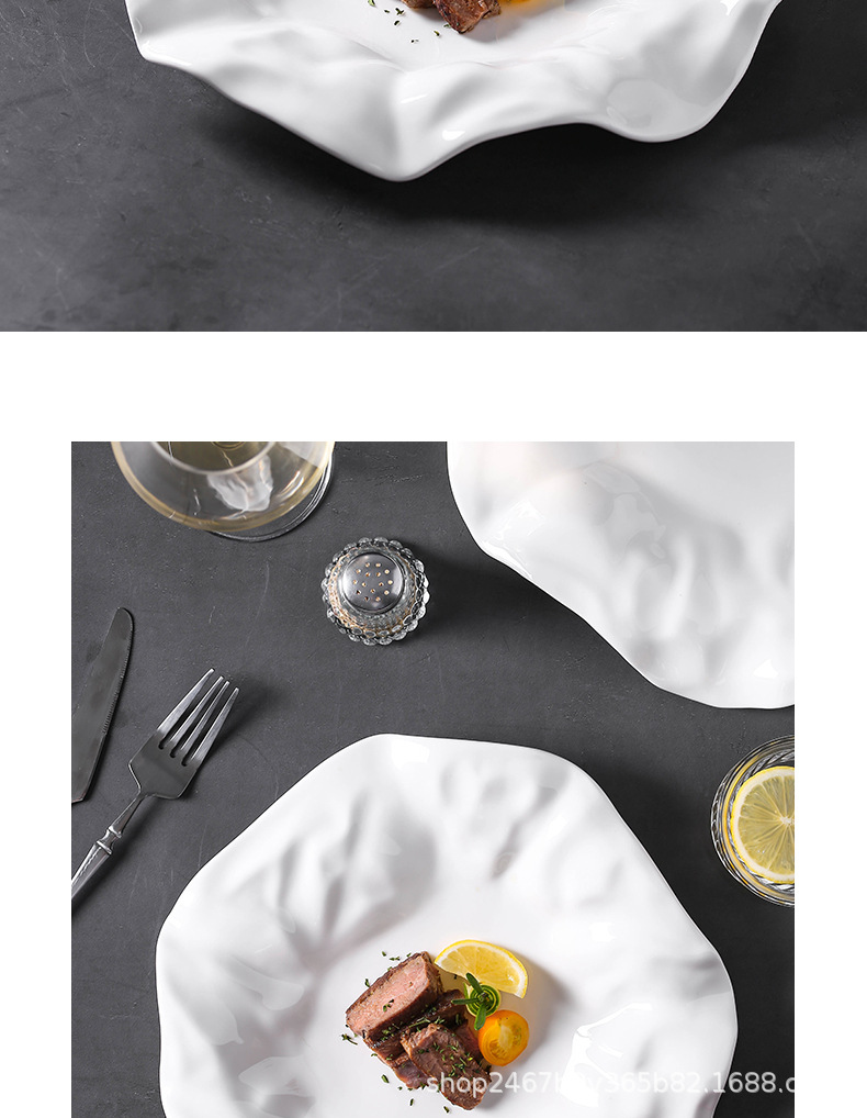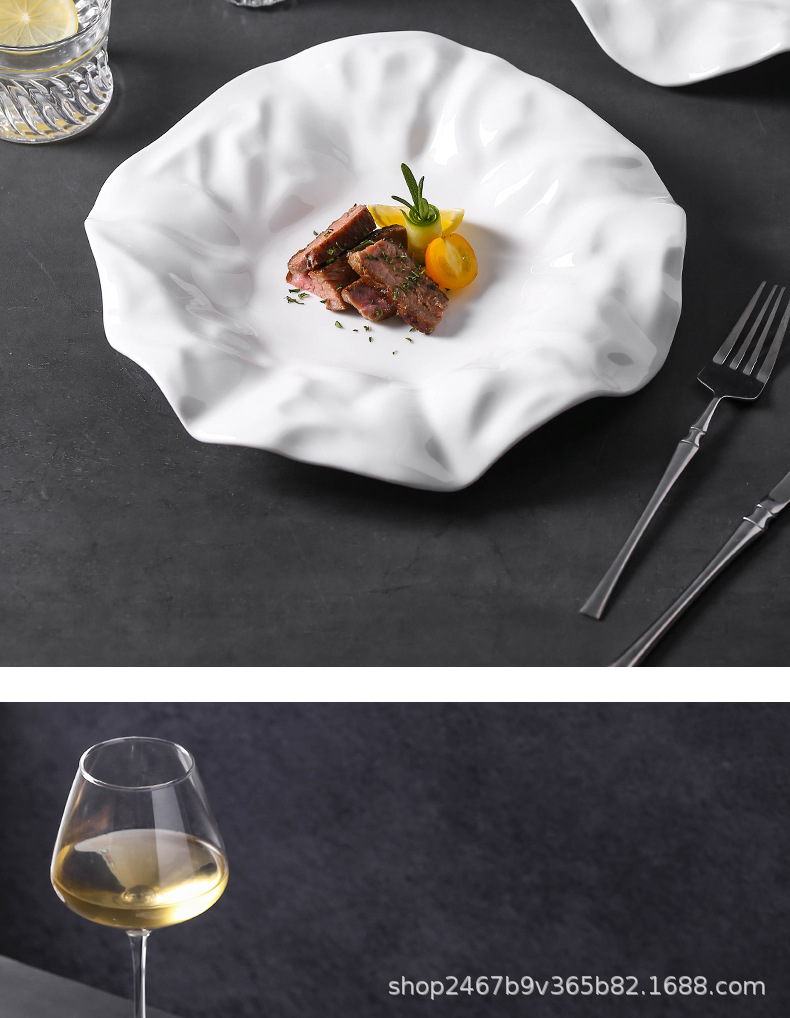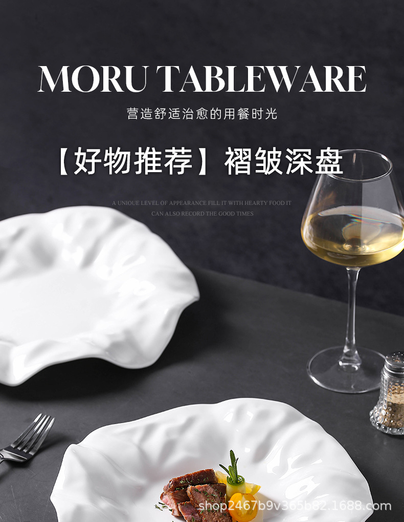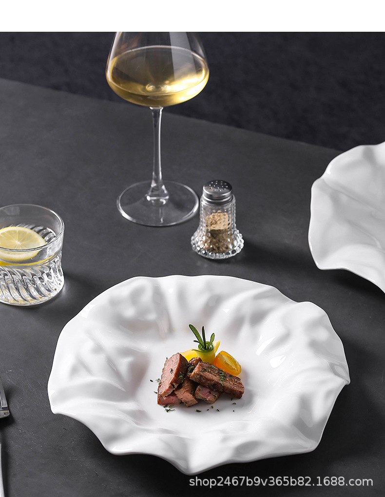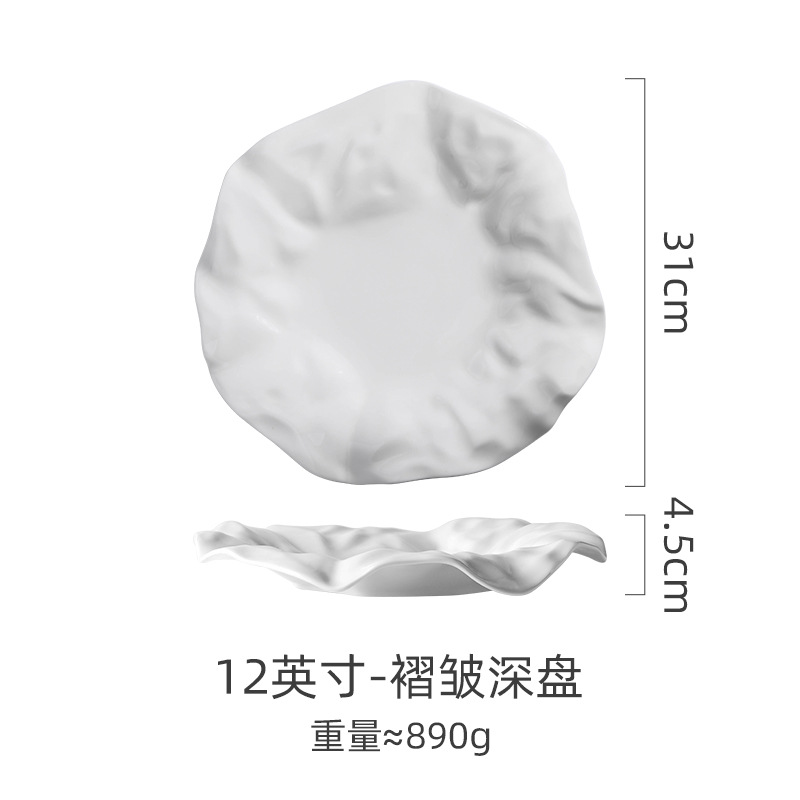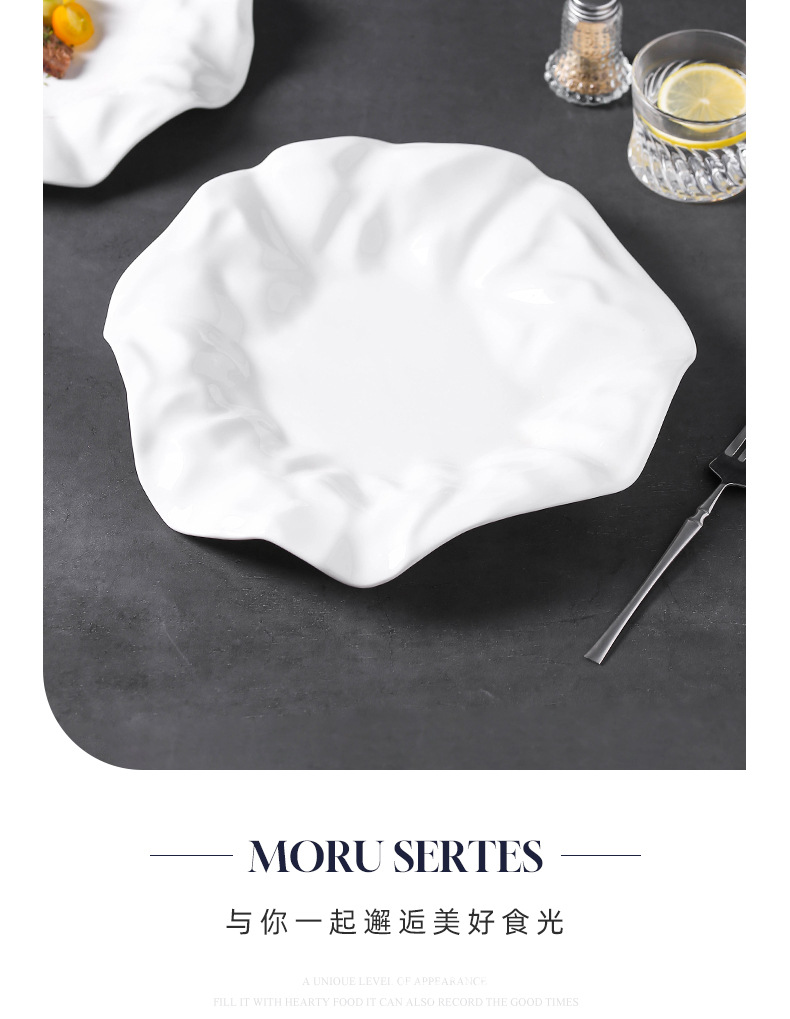호텔 퓨어 화이트 세라믹 특수 모양의 주름 판 일본식 부티크 플레이트 맞춤형 무드 홈 크리에이티브 콜드 플레이트