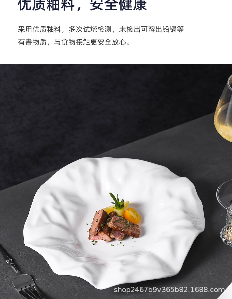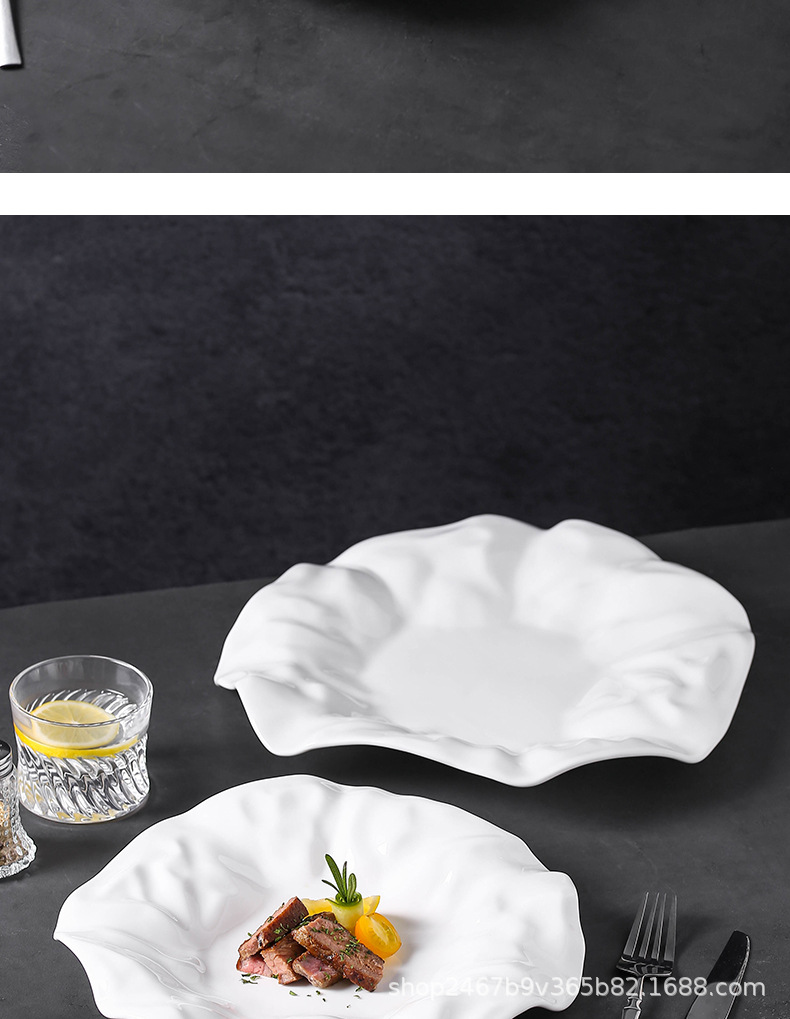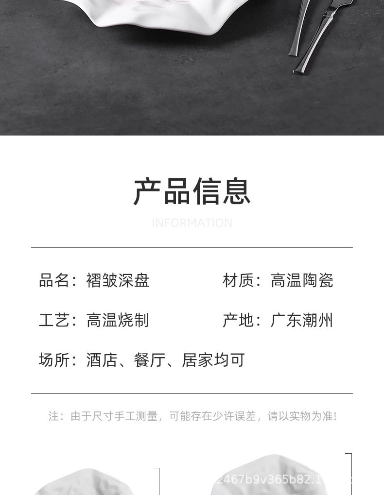 호텔 퓨어 화이트 세라믹 특수 모양의 주름 판 일본식 부티크 플레이트 맞춤형 무드 홈 크리에이티브 콜드 플레이트스토어 가기