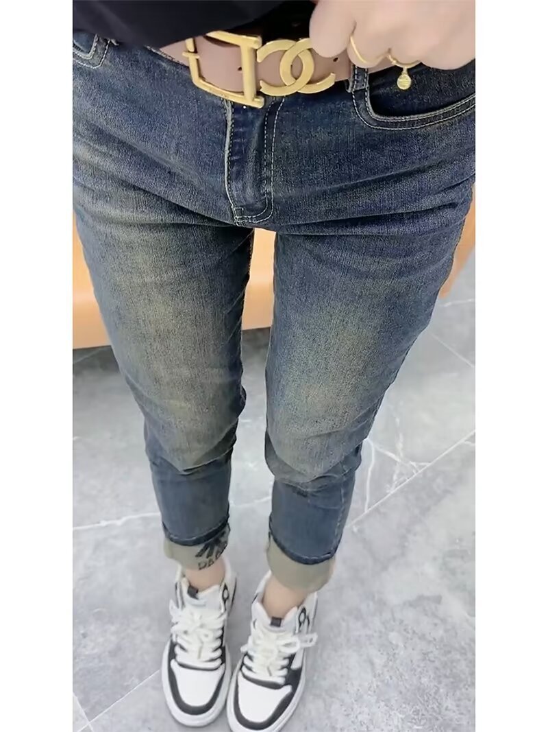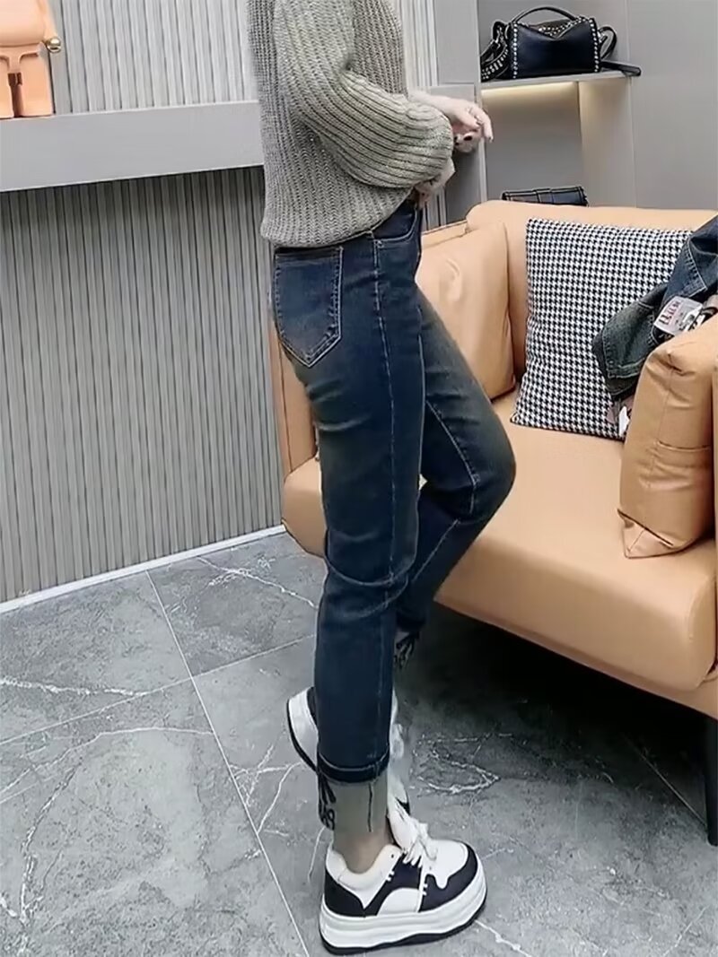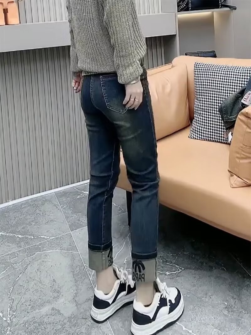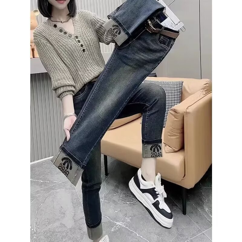 스트레이트 레그 청바지 여성의 가을 새로운 도착 작은 자른 연기 튜브 바지 플러스 사이즈 통통녀 슬리밍 배 모양의 바디 바지