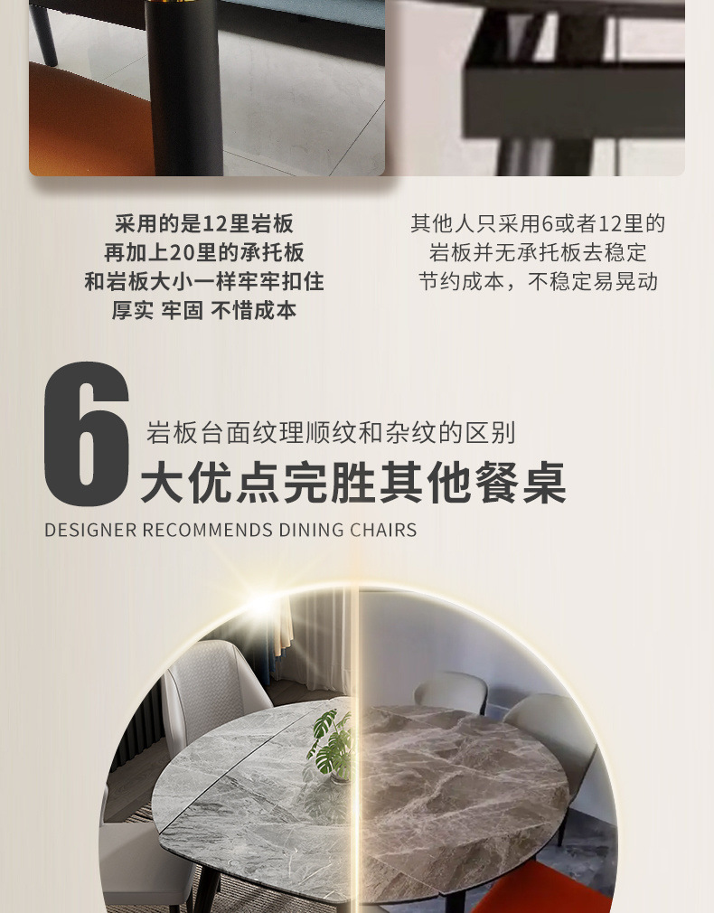 현대 암판 식탁 및 의자 조합 텔레스코픽 접이식 라운드 테이블 가정용 솔리드 우드 스퀘어 및 라운드 듀얼 사용 식탁 라이트 럭셔리