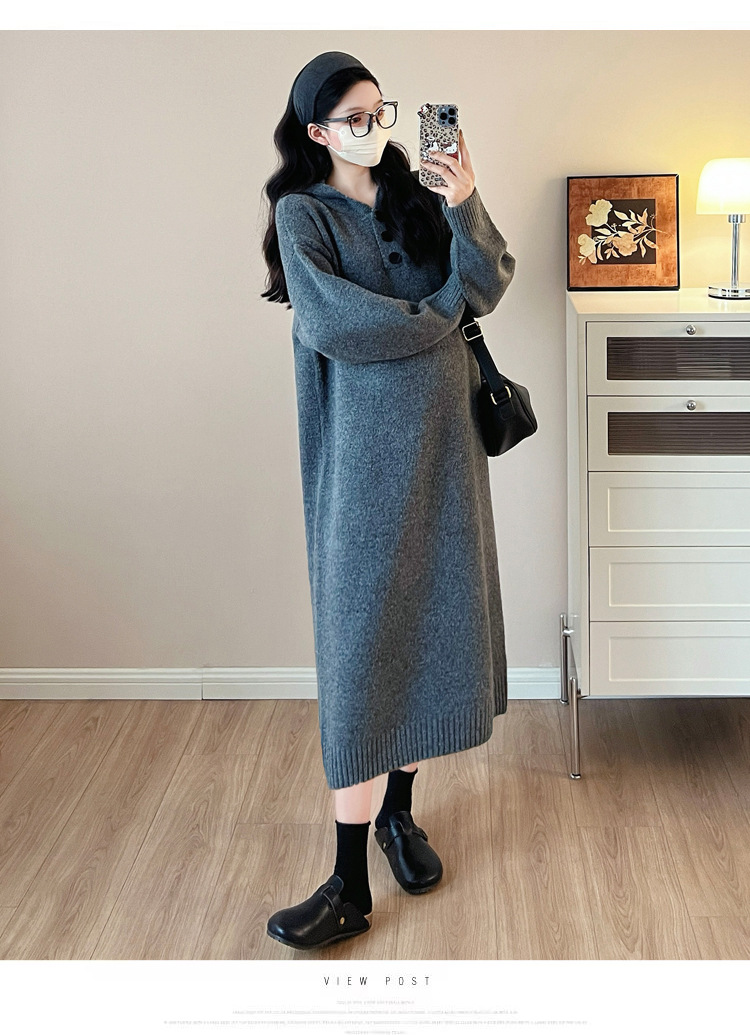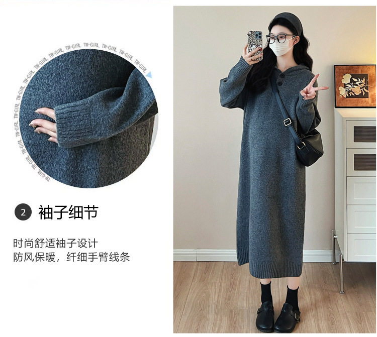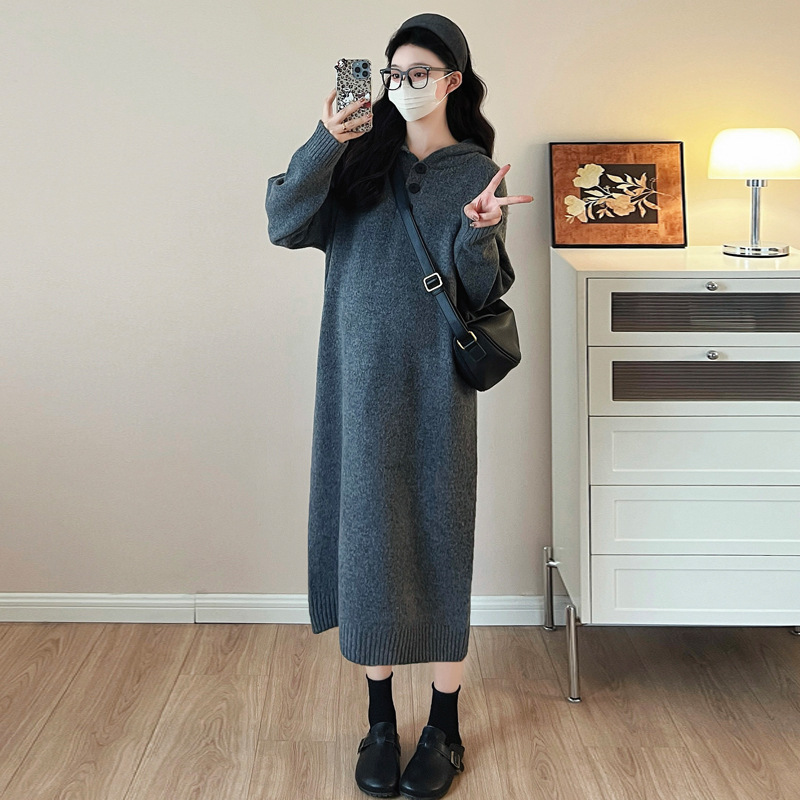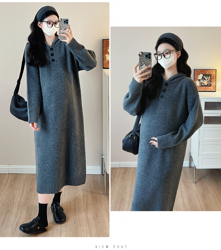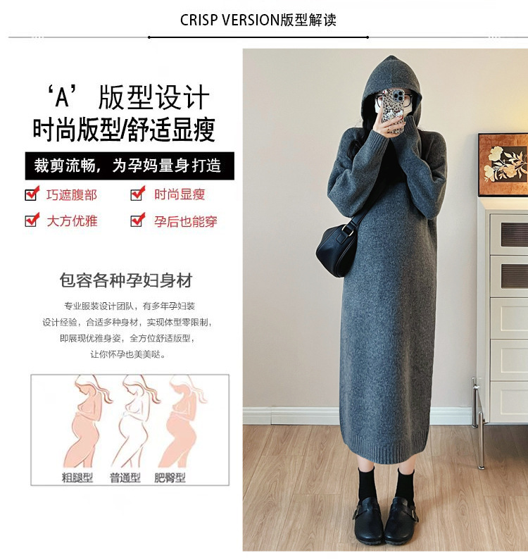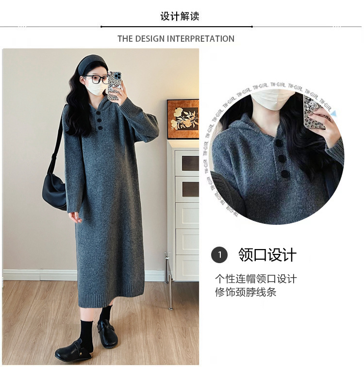출산 인터넷 연예인 두꺼운 엑스트라 대형 후드 임산부 원피스 한국 스타일 느슨한 캐주얼 패션 임산부 원피스스토어 가기