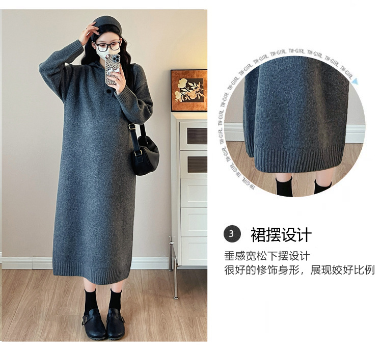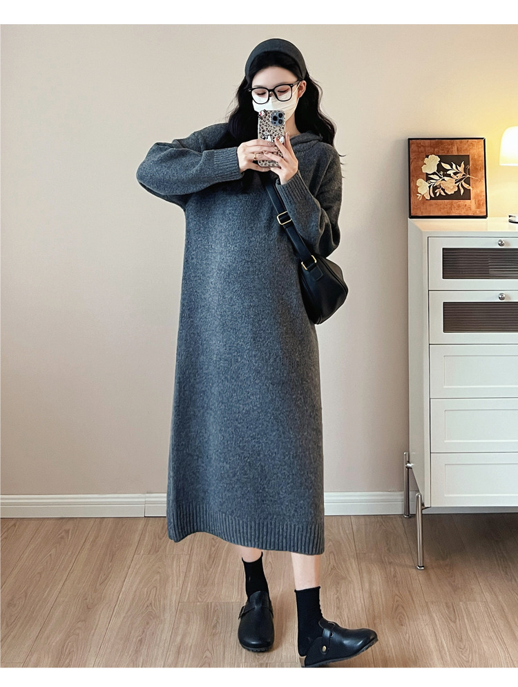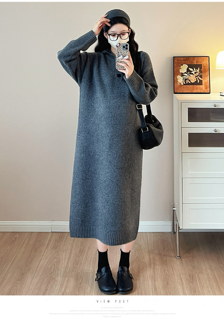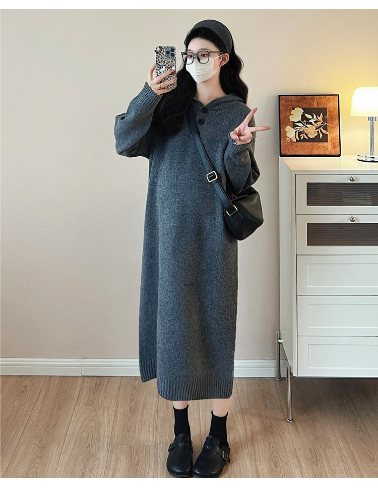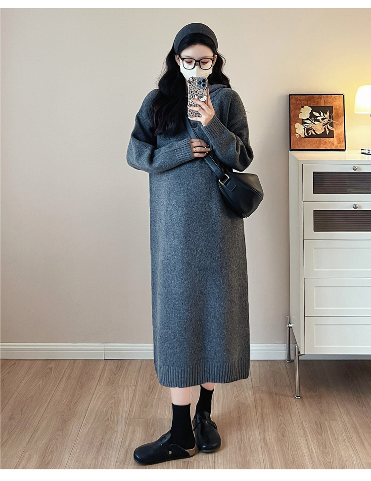 출산 인터넷 연예인 두꺼운 엑스트라 대형 후드 임산부 원피스 한국 스타일 느슨한 캐주얼 패션 임산부 원피스스토어 가기