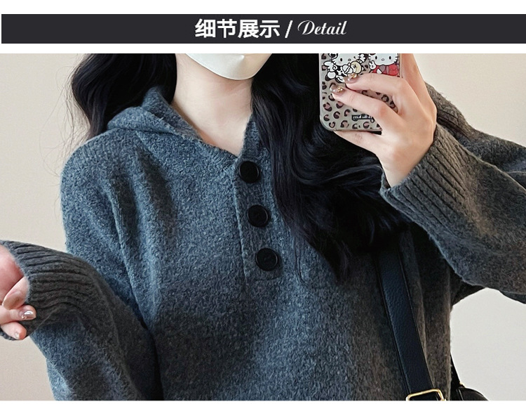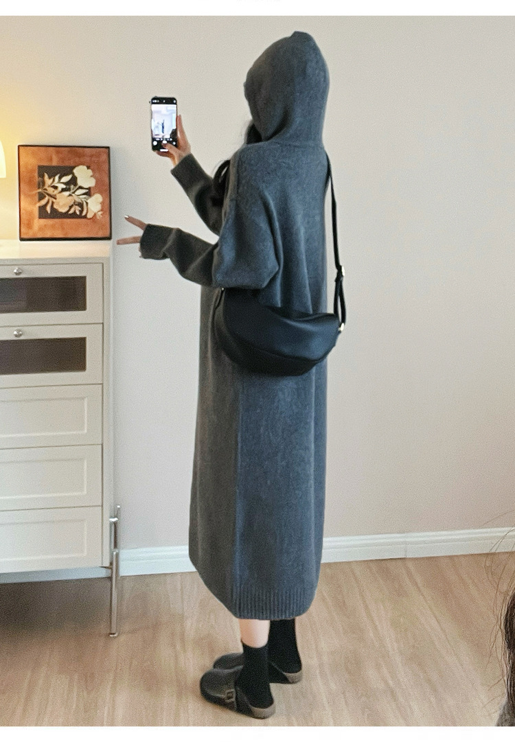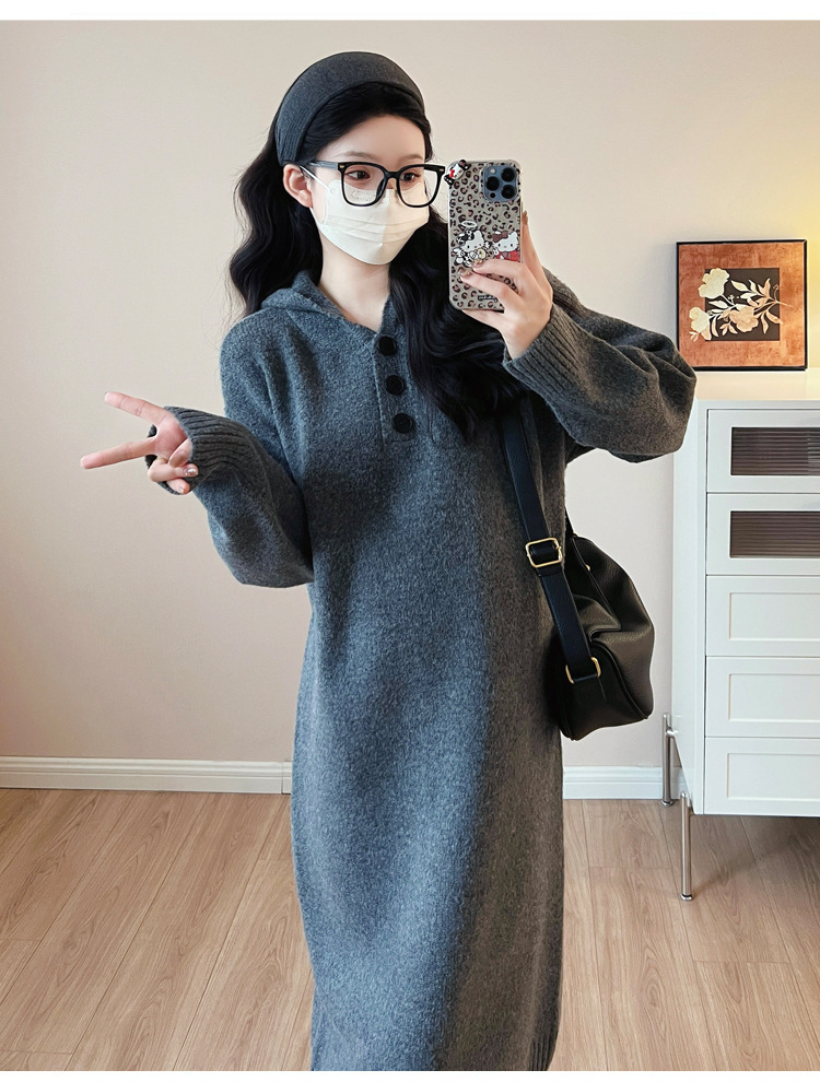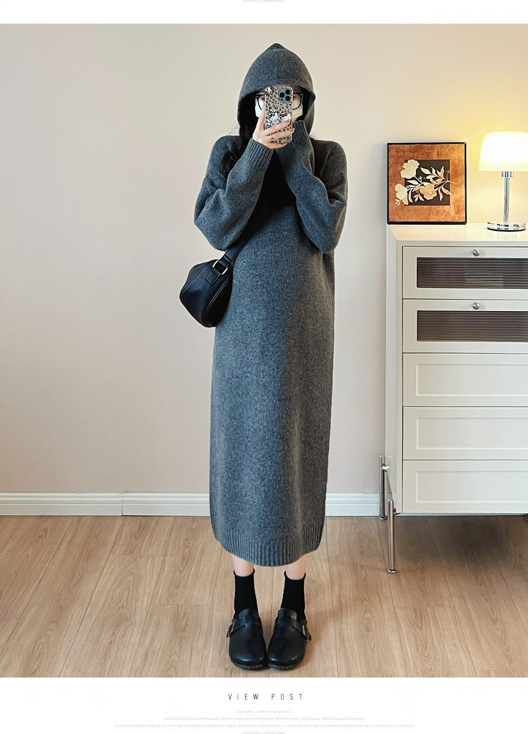 • 다크 그레이 후드 스웨터 드레스