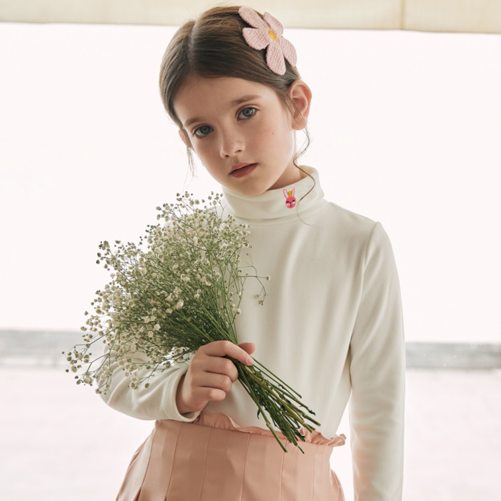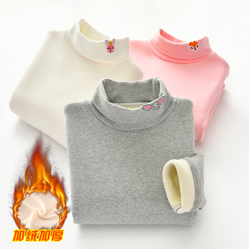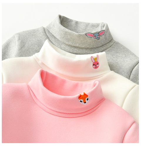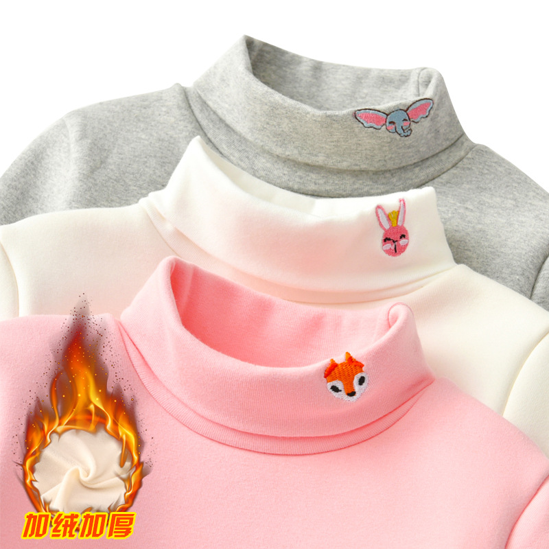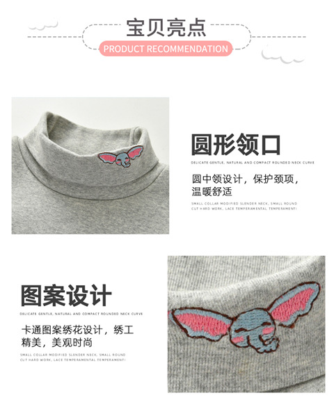봄 가을과 겨울 어린이 높은 칼라 순면 기초 셔츠 긴 소매 소녀의 서양식 가을과 겨울 여성 아동복 아기 탑