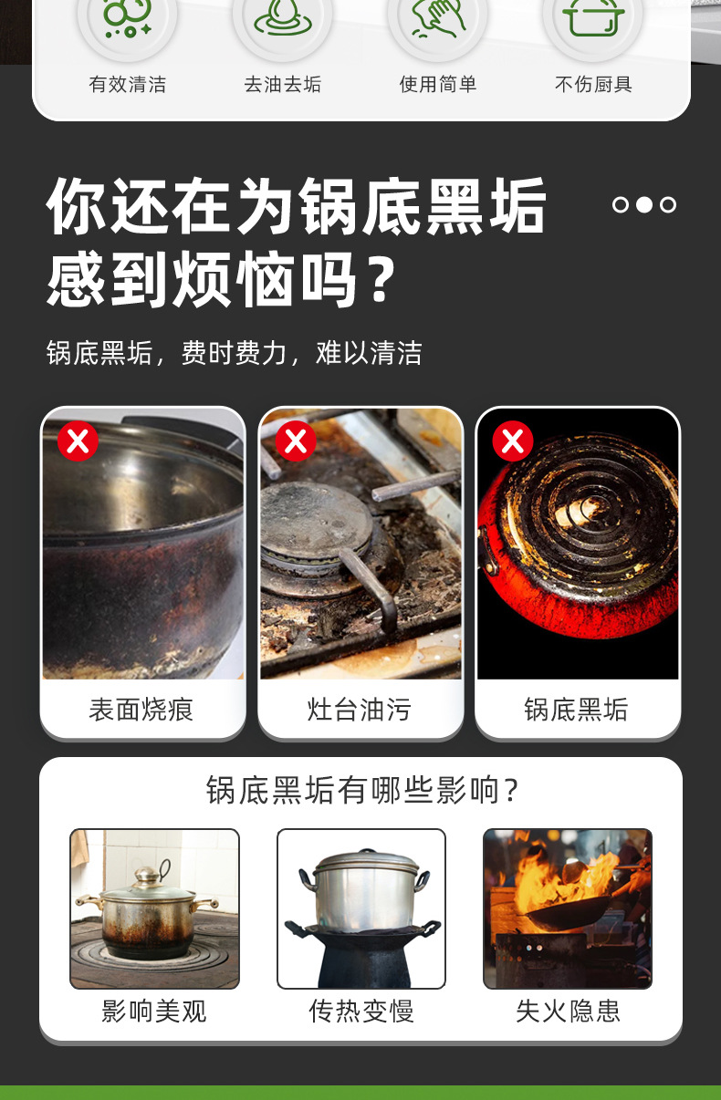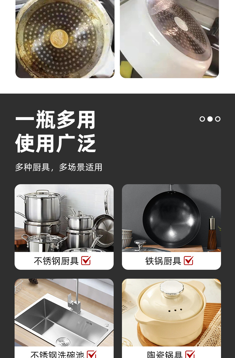 냄비 바닥 검은 먼지 청소 젤 주방 조리기구 불타는 기름 세제 스테인레스 스틸 주방 냄비 하단 검은 청소 에이전트스토어 가기