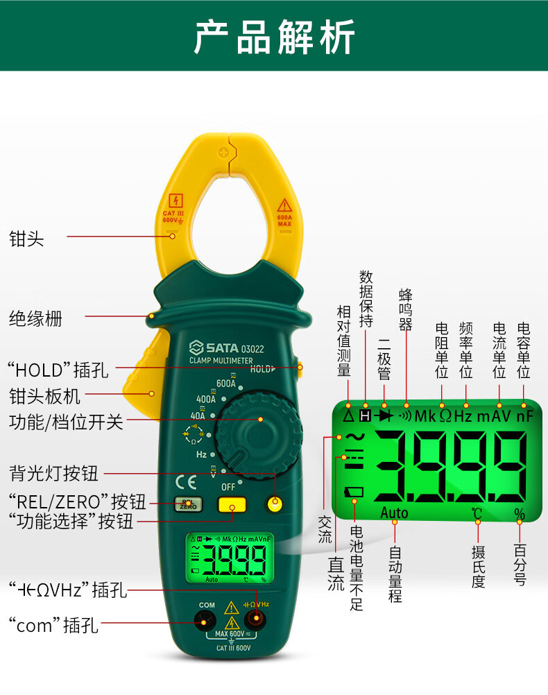 Shida (SATA) 멀티 미터 대형 턱 클램프 멀티 미터 03025