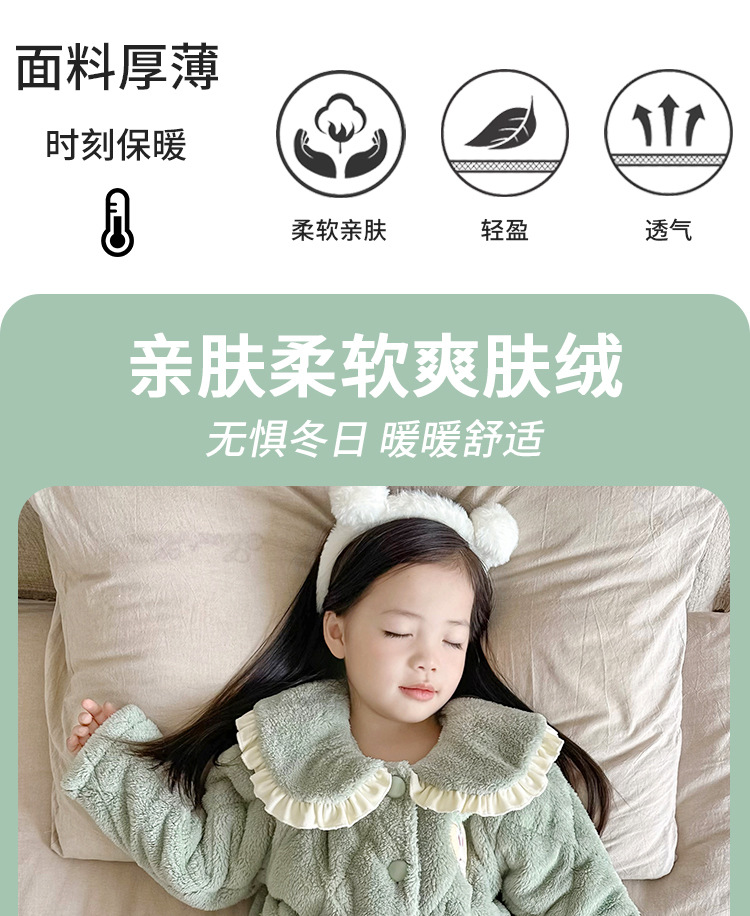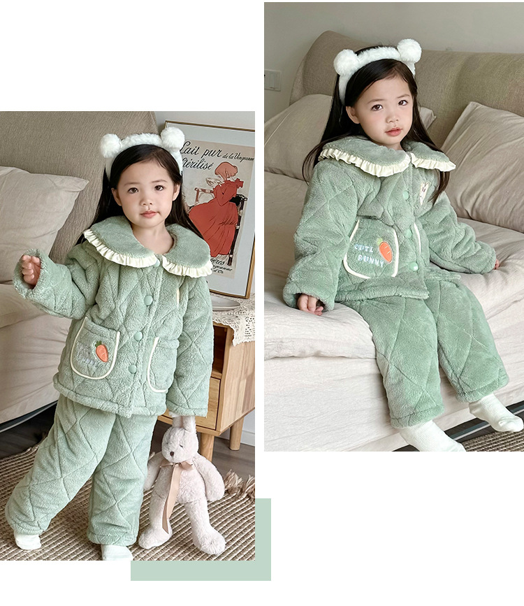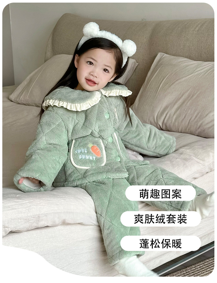 정품 공장 직영 가을 겨울 기모 두꺼운 삼중 누빔 여아 코랄벨벳 잠옷 아동용 세련된 홈웨어