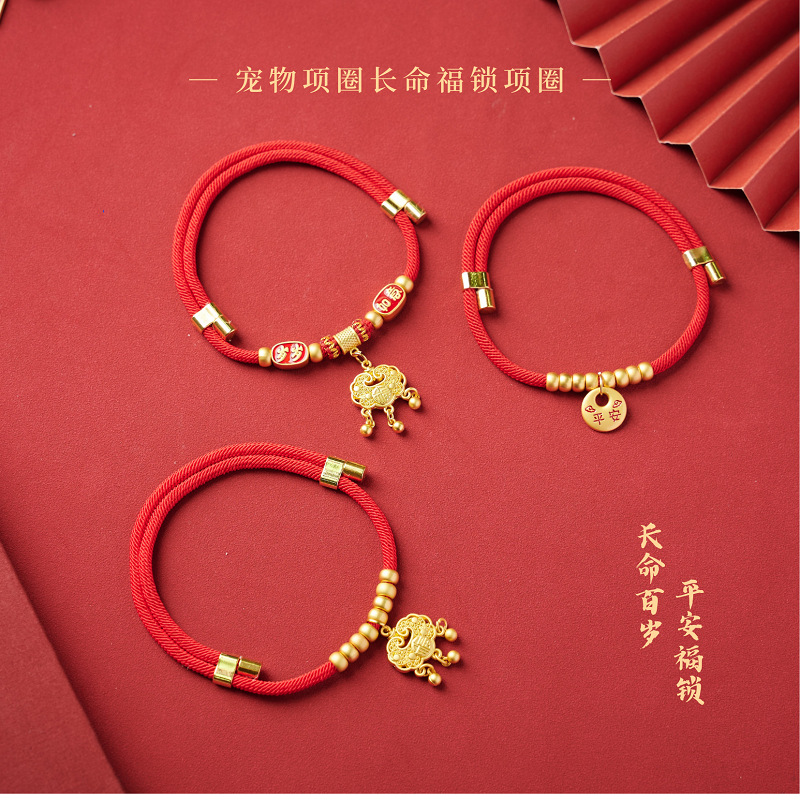 새해 애완 동물 목걸이 손으로 짠 핑 긴 생활 잠금 축제 고양이 개 스카프 목걸이 조정 가능한 보석스토어 가기