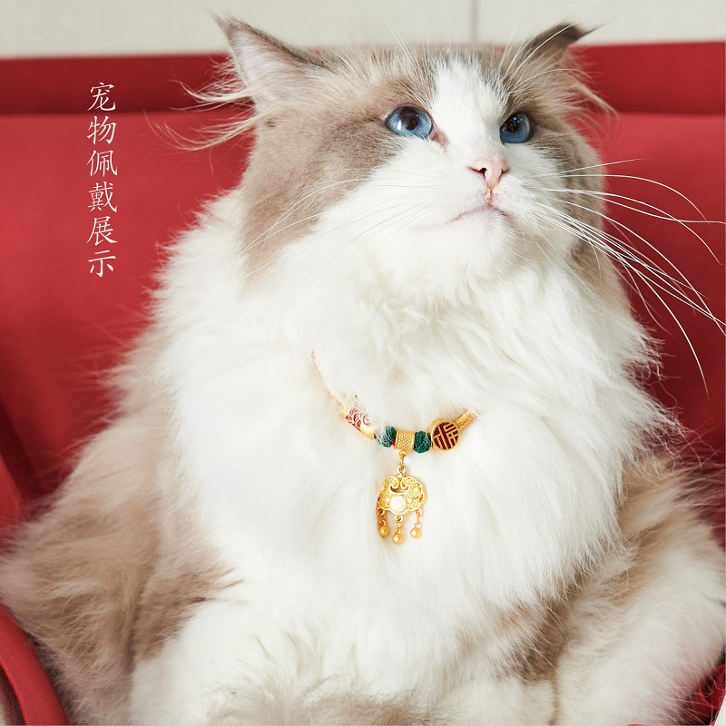 새해 애완 동물 목걸이 손으로 짠 핑 긴 생활 잠금 축제 고양이 개 스카프 목걸이 조정 가능한 보석