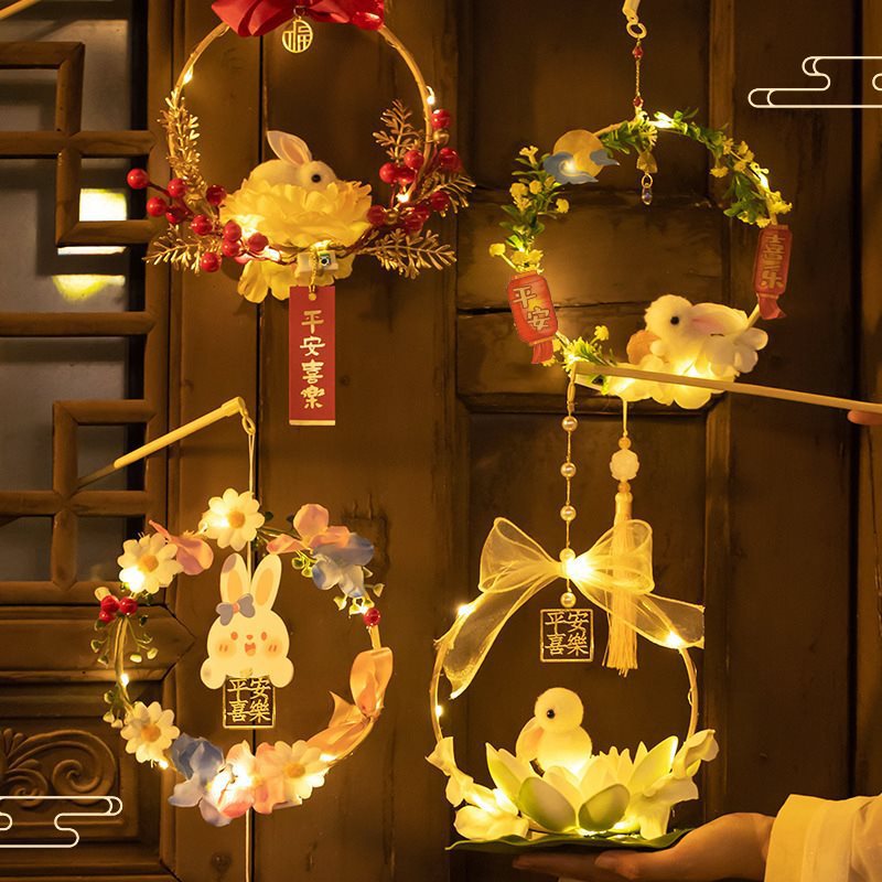 신년 새해 등불 2023 새로운 DIY 어린이 휴대용 골동품 토끼 등불 매달려 장식품 봄 축제 24 Qin Xuan스토어 가기
