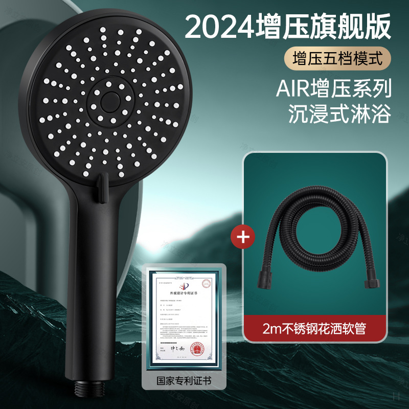 • [아테네 블랙 세트 4] 5단 슈퍼차저 샤워 + 2m 샤워파이프