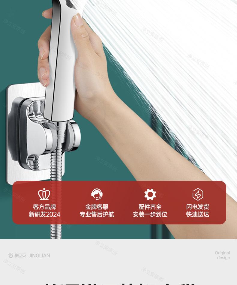 • [크리스탈 다이아몬드 실버 세트 2] 5단 슈퍼차저 샤워 + 1.5m 호스 + 브래킷