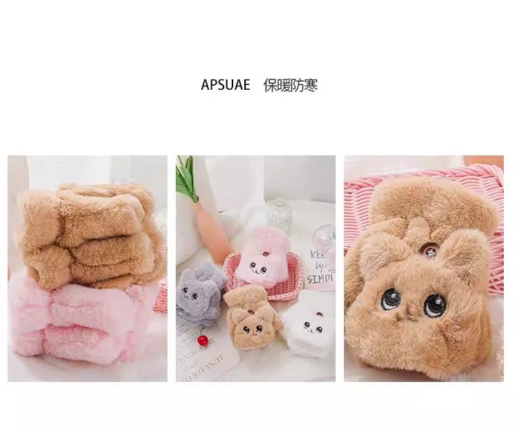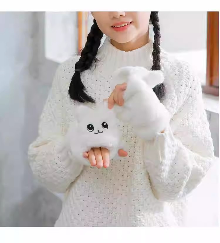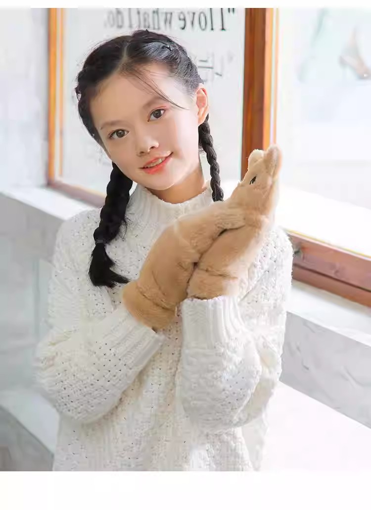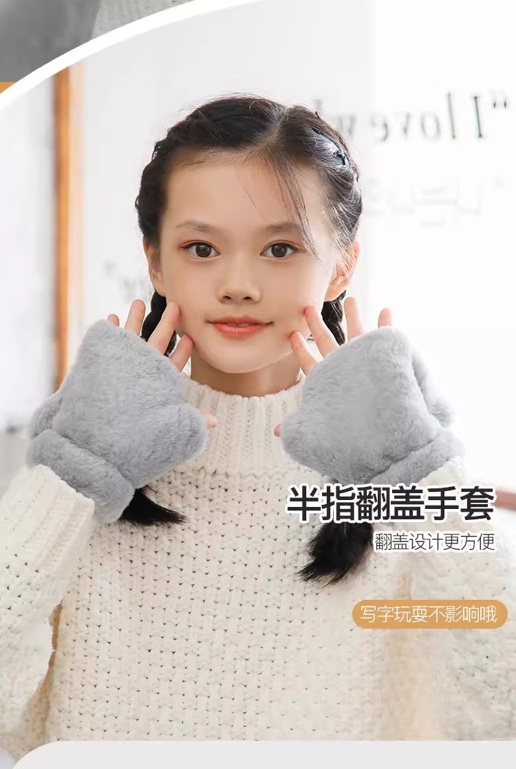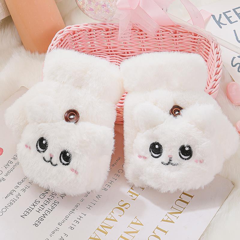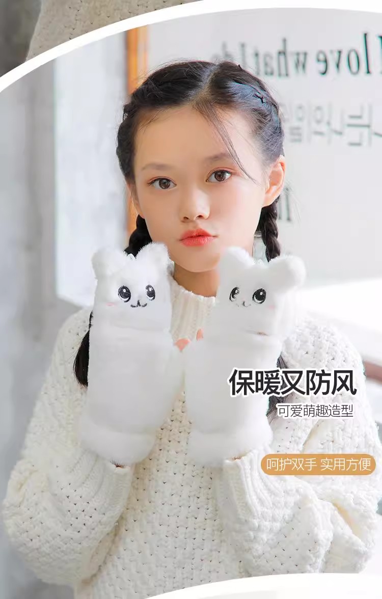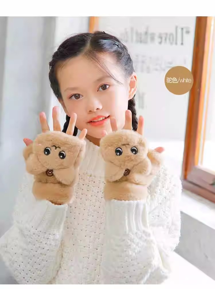 부드러운 귀여운 만화 고양이 봉제 어린이 장갑 소녀 가을과 겨울 따뜻한 기모 달콤한 하프 핑거 플립 장갑 국경스토어 가기