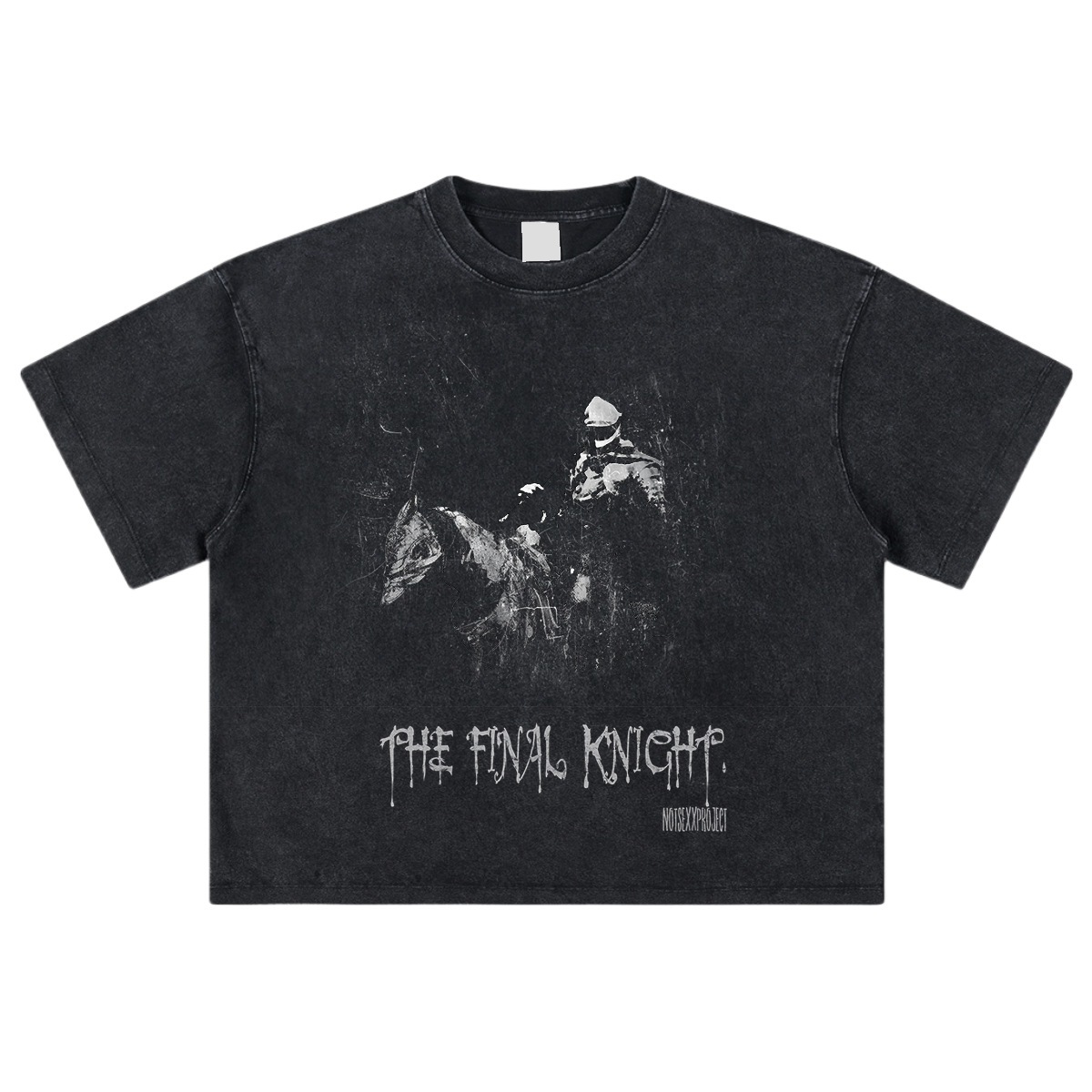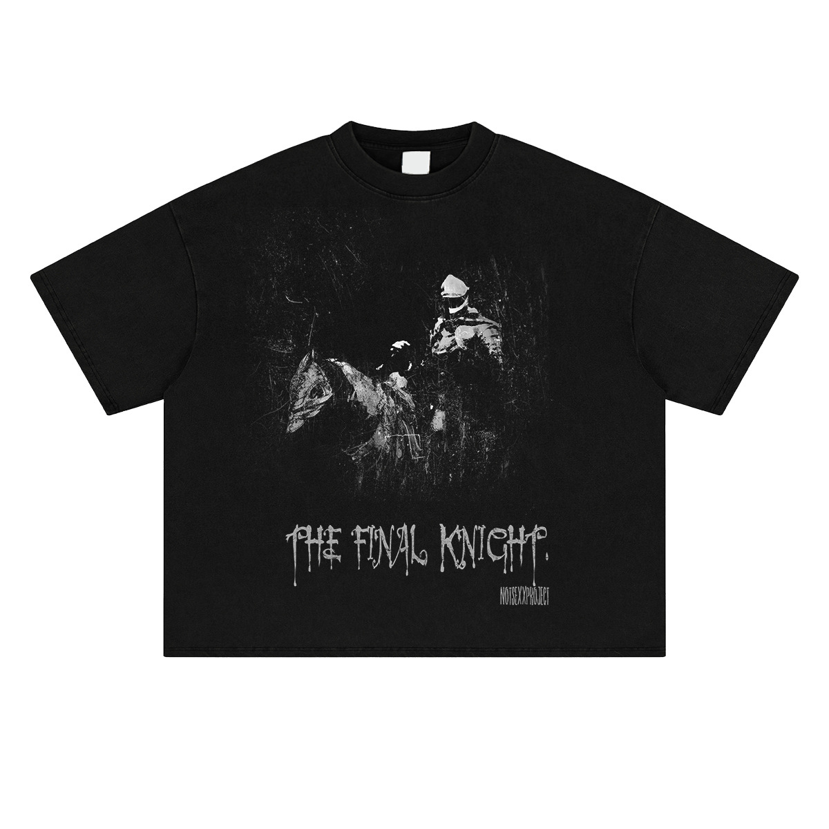 NOTSEXX "중세 기사" 디지털 화이트 잉크 직접 주입 260g 코튼 박시 느슨한 짧은 소매 티셔츠 남성