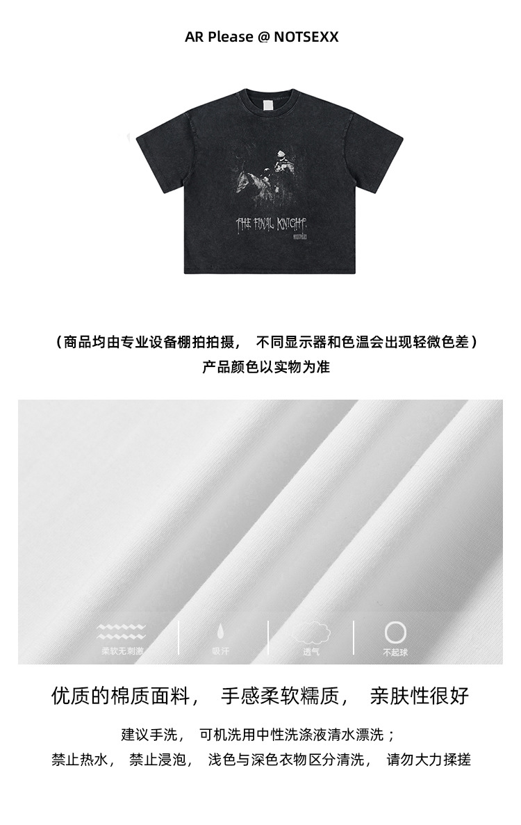 NOTSEXX "중세 기사" 디지털 화이트 잉크 직접 주입 260g 코튼 박시 느슨한 짧은 소매 티셔츠 남성스토어 가기