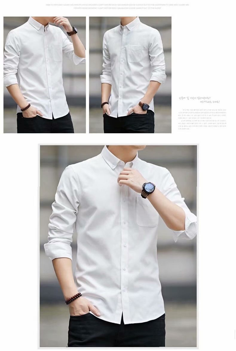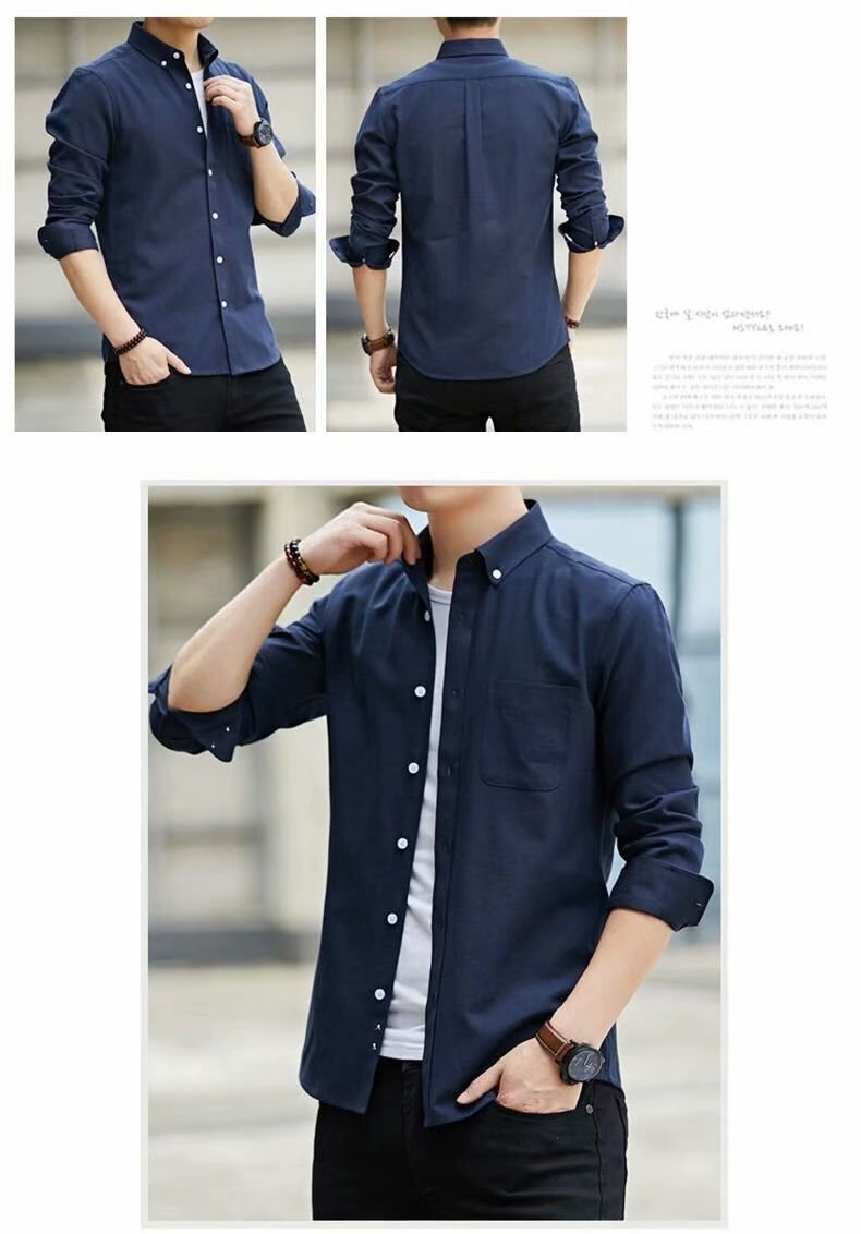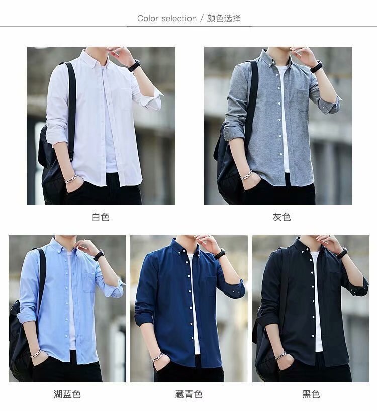 봄과 가을 옥스퍼드 스피닝 셔츠 남성용 긴팔 컬러 청소년 캐주얼 학생 슬림핏 한국식 트렌디 셔츠스토어 가기
