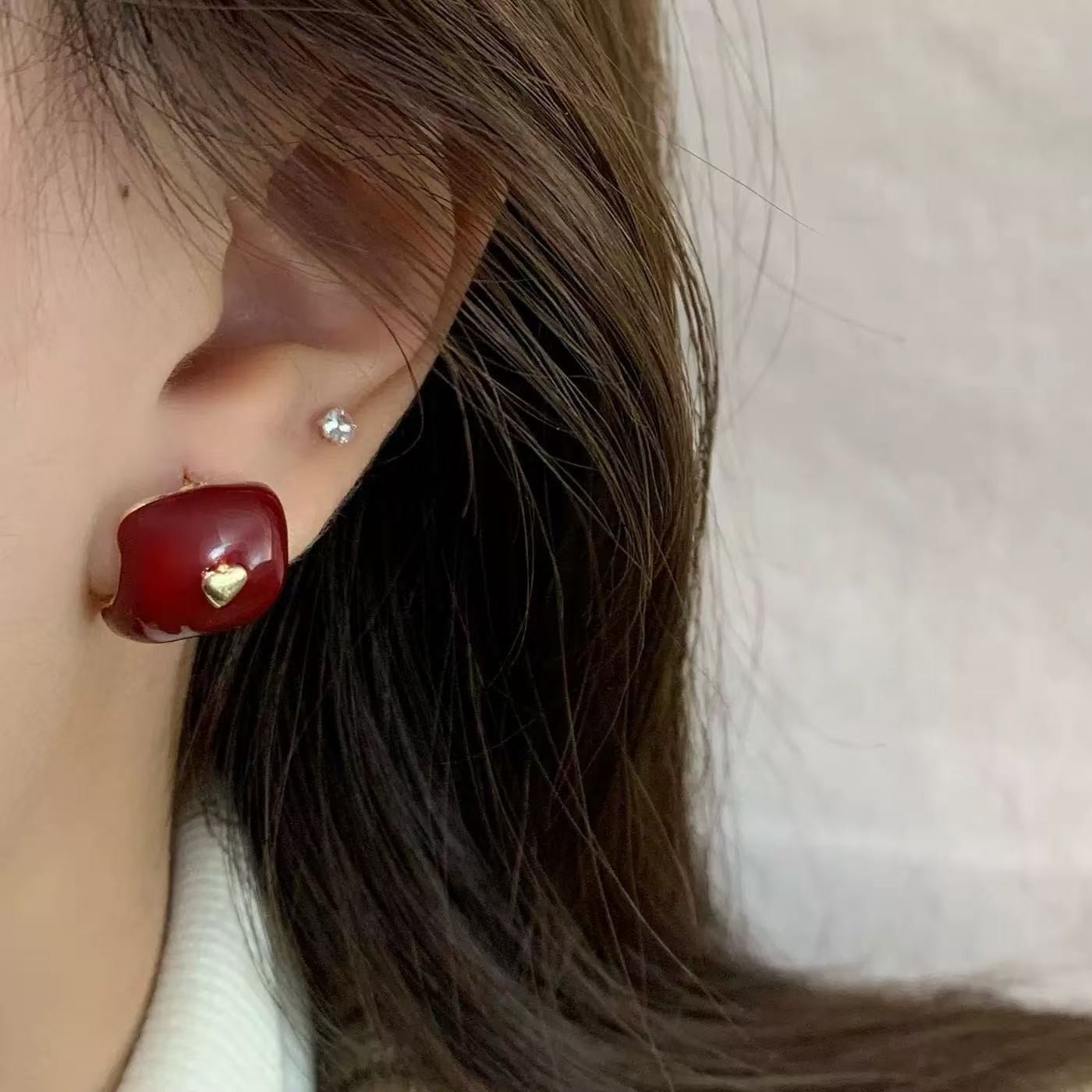 • 레드 스퀘어 러브 귀걸이